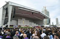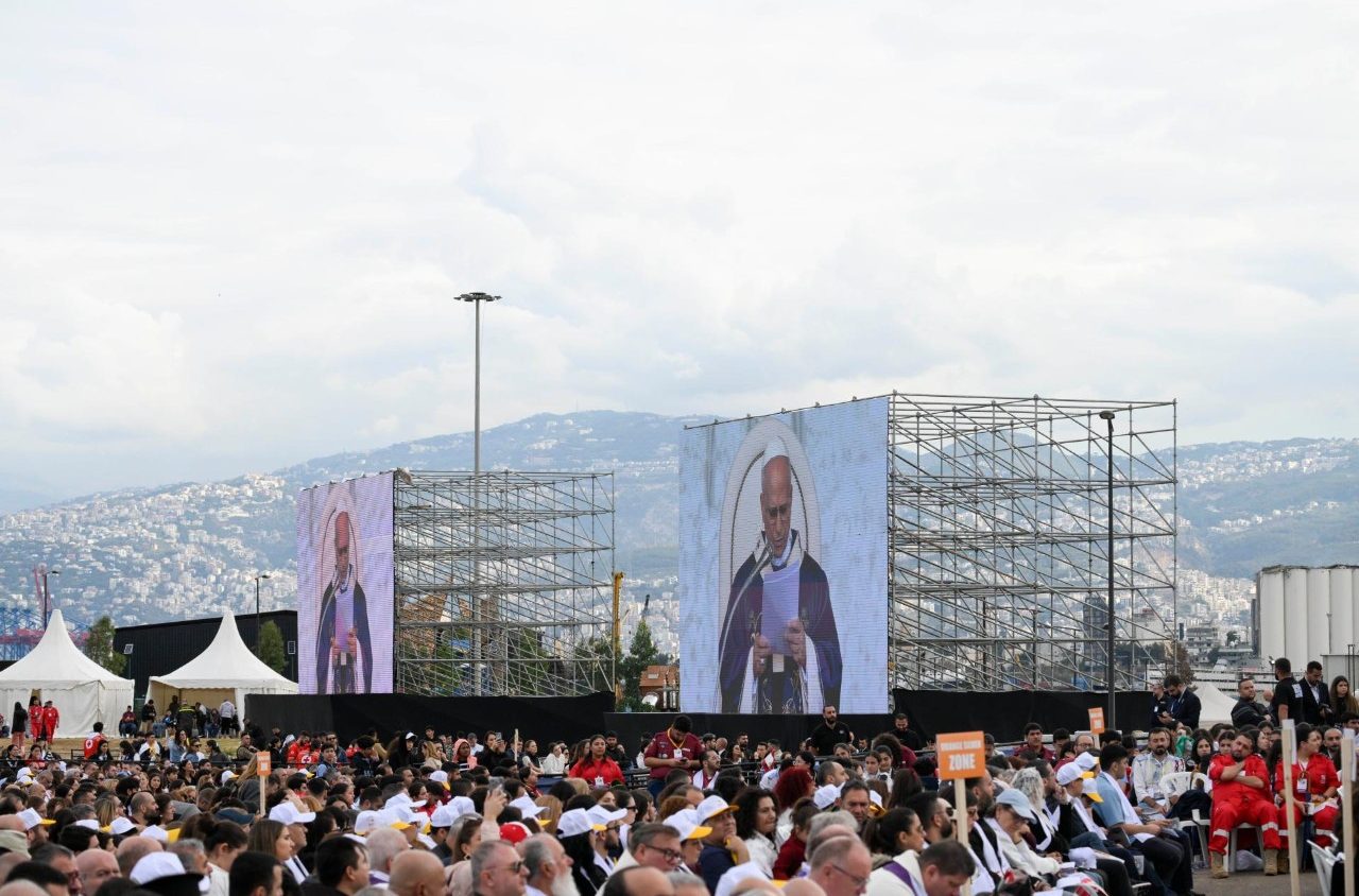 Після відвідин лікарні Святого Хреста та молитви в порту Бейрута на місці трагічного вибуху 2020 року, Папа Лев XIV прибув на набережну Бейрута, щоб очолити Євхаристійне богослужіння, що увінчало його шестиденну Апостольську подорож. Перед Святою Месою він проїхав панорамним автомобілем між секторами, вітаючись з паломниками, яких зібралося понад 150 тисяч.
