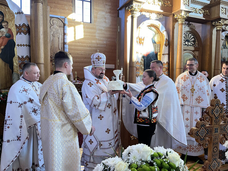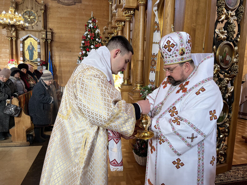 Архиєрейський візит з гуцульською традицією: єпископ Петро Голіней очолив Літургію на свято Святого Василія у Косові