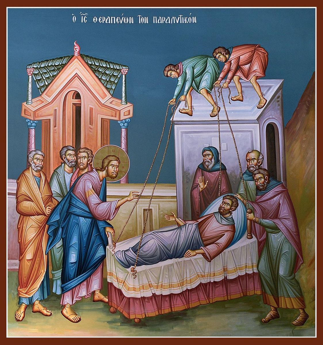Слухаючи євангельське слово, разом з Ісусом переносимося думкою в Капернаум, де Він перебуває в одному домі. Не виключено, що це міг бути дім Симона Петра. Майже хочеться думати чи сказати, що Ісус чекає на паралітика, щоб звільнити його від недуги, оскільки саме це чудо знаходиться в центрі розповіді.