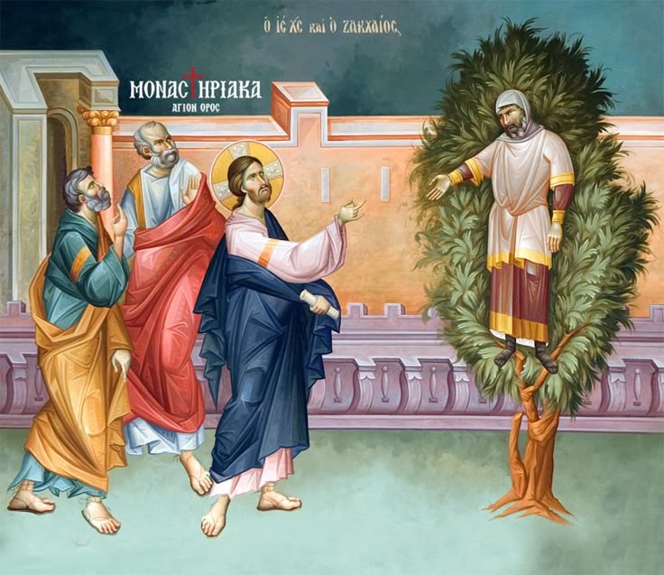 Лука, із властивою йому іронією, описує, що робить цей митар. Насамперед автор зазначає, що той був малого зросту. І коли почув, що Ісус приходить, цікавість поставила його в дуже незручну позицію. Уявіть собі начальника податкової інспекції, який привселюдно виліз на дерево. Тепер це викликало б у нас сміх і розчарування. Але у Священному Писанні ми чуємо слово, яке каже: «Проклят усякий, хто висить на дереві» (Гал. 3, 13; пор. Втор. 21, 23).