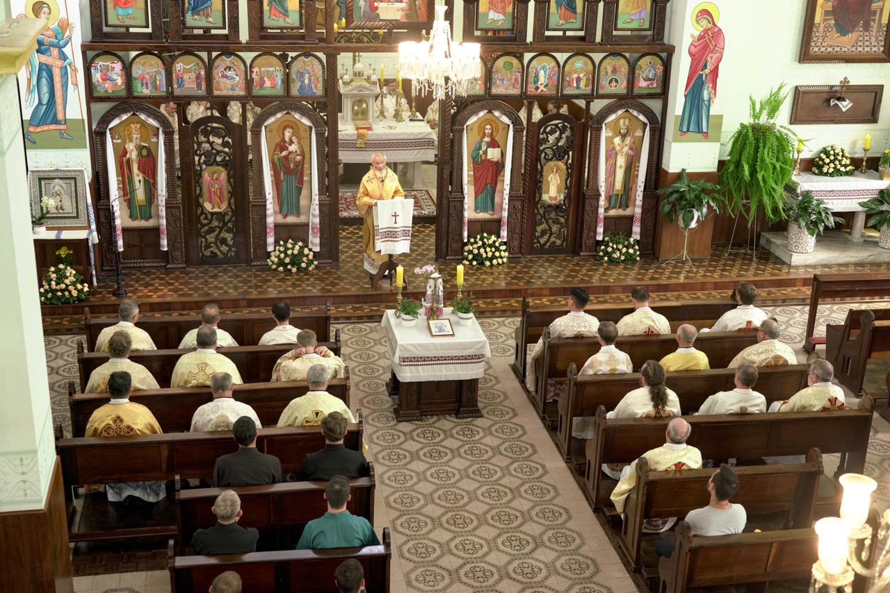 Зустрічі передувала спільна Божественна Літургія в архикатедральному соборі Святого Івана Хрестителя, яку очолив митрополит Володимир Ковбич. Після богослужіння відбулася панахида у крипті катедри, де поховані владика Йосиф Мартинець, ЧСВВ — перший єпископ у Бразилії, та владика Єфрем Кривий, ЧСВВ, єпископ-коад’ютор, який майже 30 років очолював Куритибську єпархію. Про це повідомляє Департамент інформації УГКЦ.