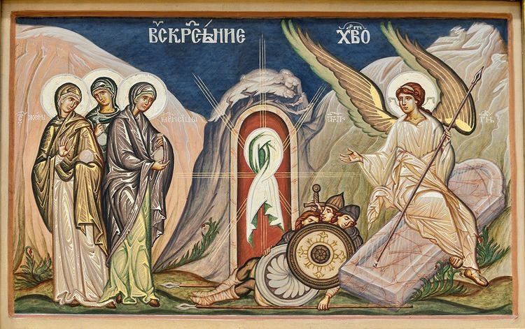 Порожній гріб на перший погляд злякав жінок. Але юнак у білій одежі їх заспокоює: «Не бійтеся». Нарешті після смерті Вчителя хтось зацікавився їхнім станом. Але вони ще бояться. Одна справа знати про воскресіння, а інша — зустріти Воскреслого. Найперше, згідно з почутим євангелієм, він з’являється Марії Магдалині.