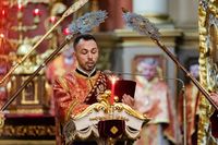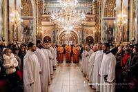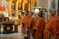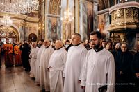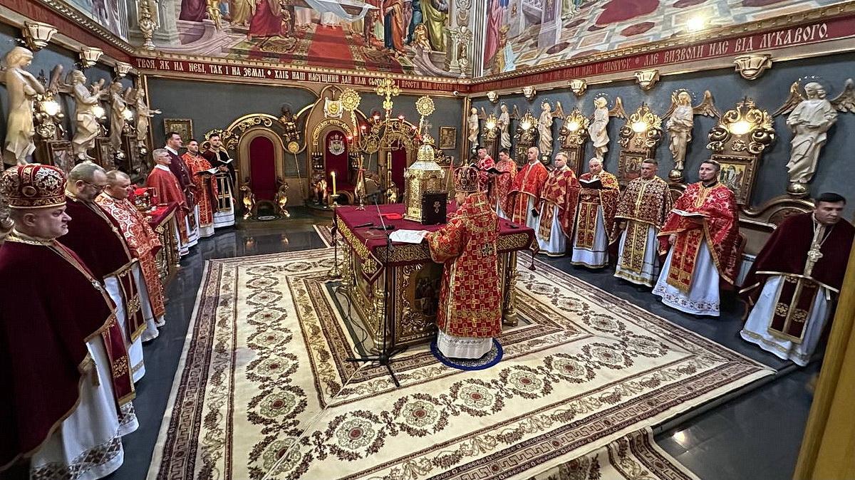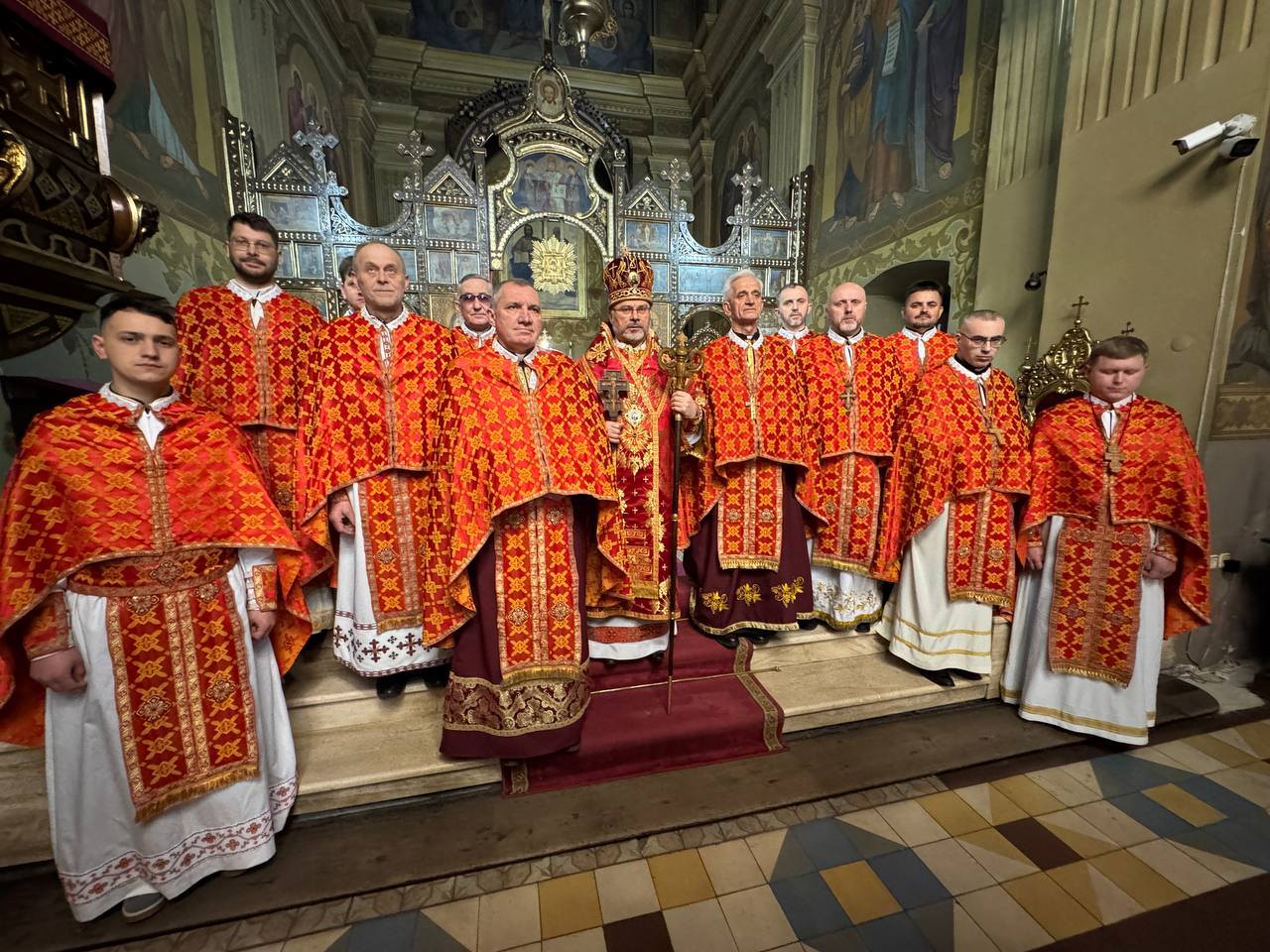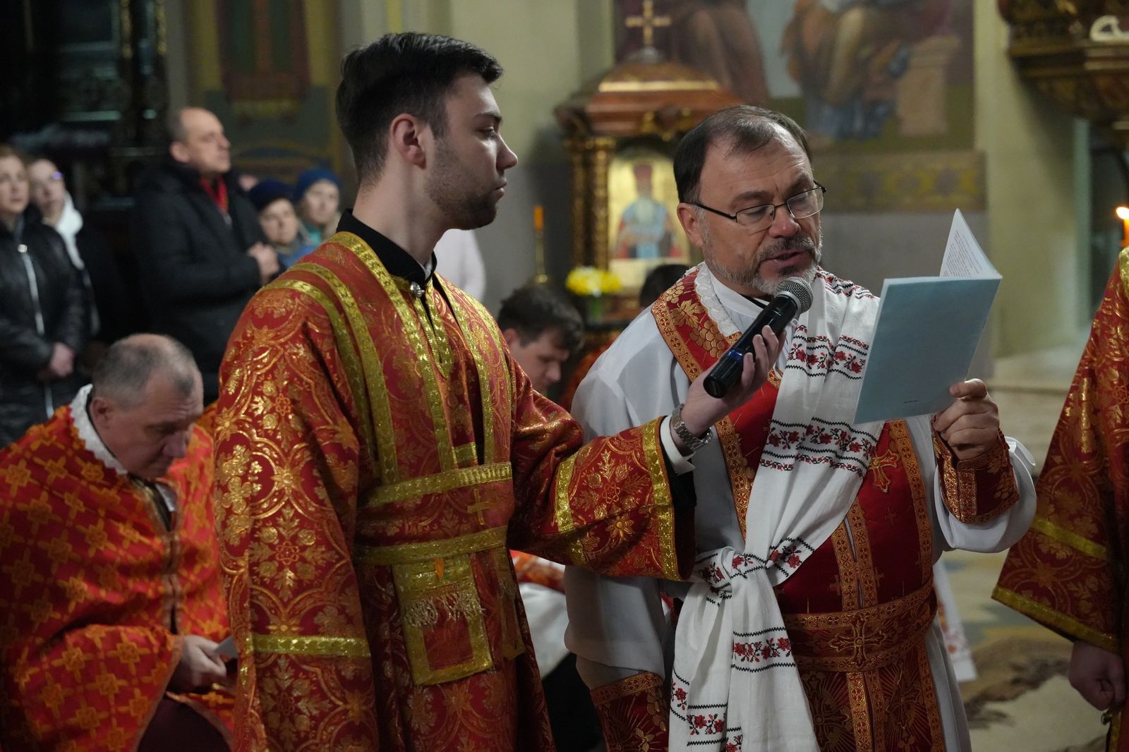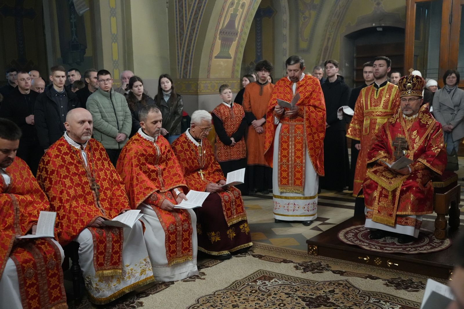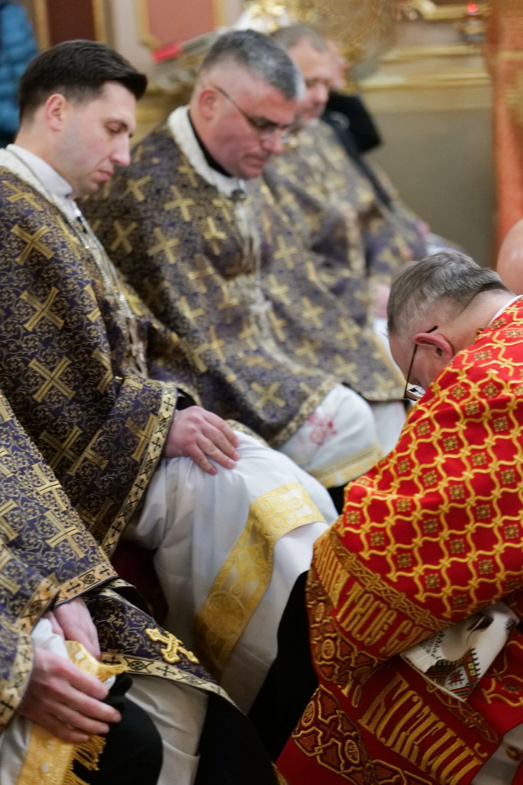 Архиєпископ і митрополит Львівський Ігор Возьняк у Великий четвер очолив Вечірню з Божественною Літургією святого Василія Великого в архикатедральному соборі Святого Юрія і звершив Чин умивання ніг священникам на спомин про те, як Ісус Христос омив ноги своїм учням.