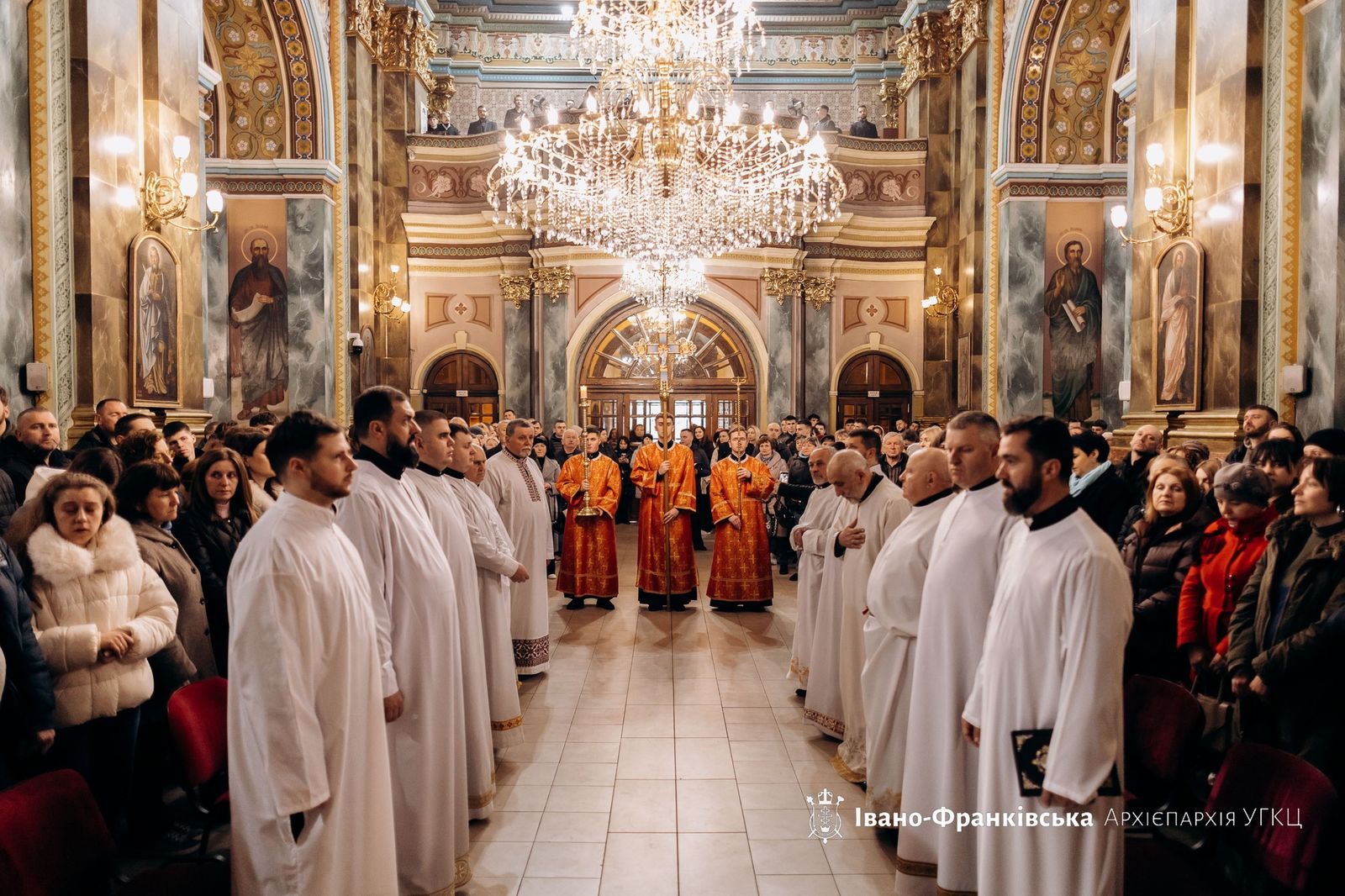 Щоб зануритися у події Страсного четверга, у головній святині міста зібралися парафіяни, гості храму, діти, молодь, священнослужителі собору, душпастирі Івано-Франківської архиєпархії, спільнота Івано-Франківської духовної семінарії ім. свщмч. Йосафата. Моління своїм співом супроводжував семінарійний хор «Благовіст».