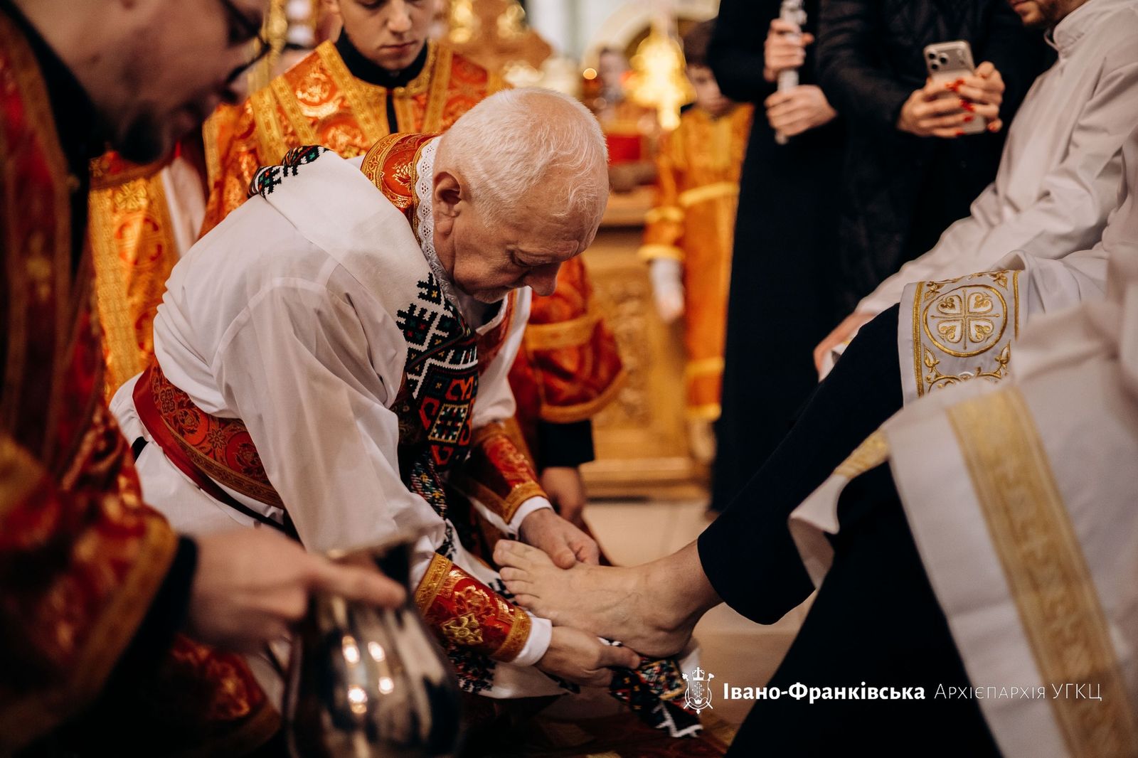В архикатедральному і митрополичому соборі Воскресіння Христового відбулася Велика Вечірня з Літургією святого Василія Великого. Цього дня, за прикладом Ісуса Христа, архиєпископ і митрополит Івано-Франківський Володимир Війтишин звершив Чин умивання ніг владиці Миколі Семенишину, єпископу-помічнику Івано-Франківської архиєпархії УГКЦ, та одинадцятьом душпастирям архиєпархії.