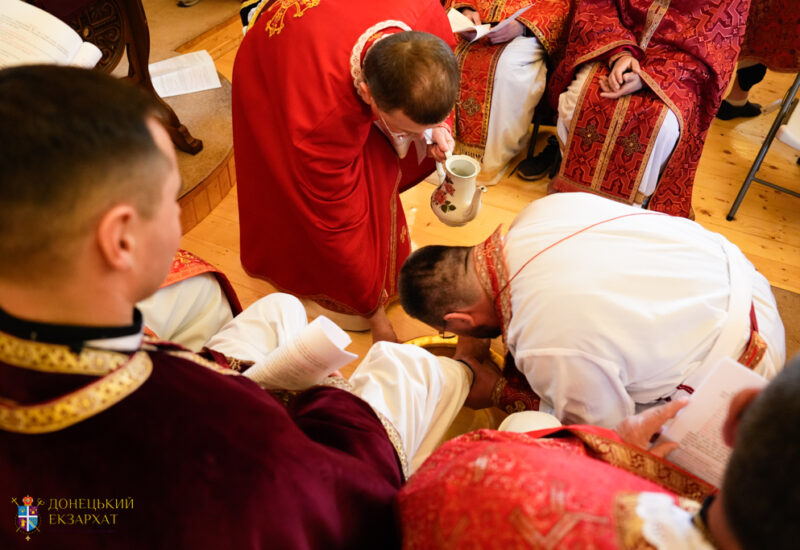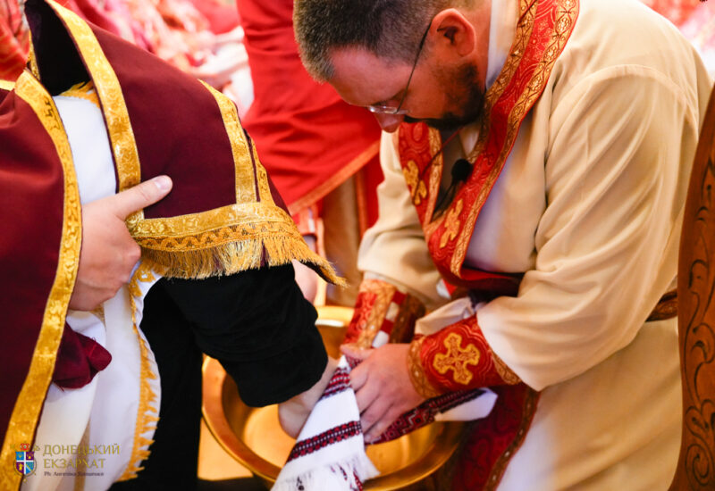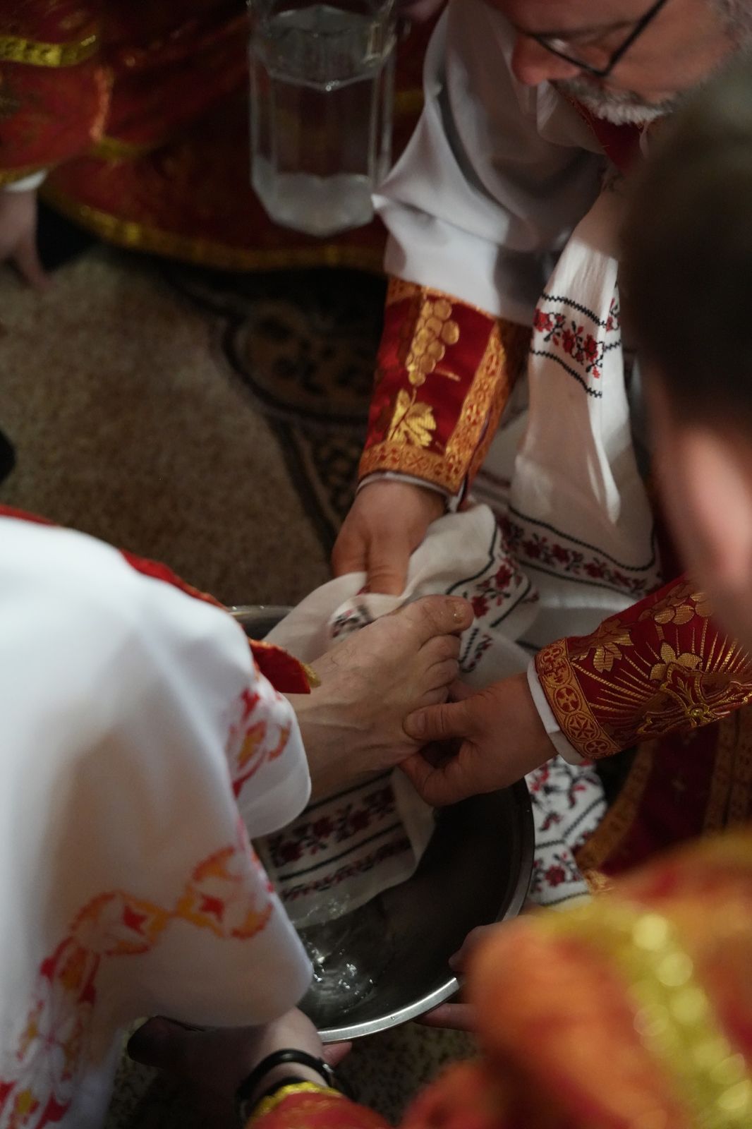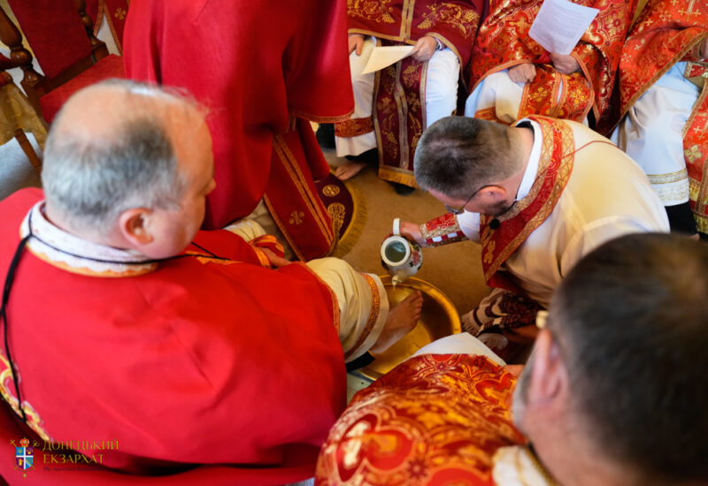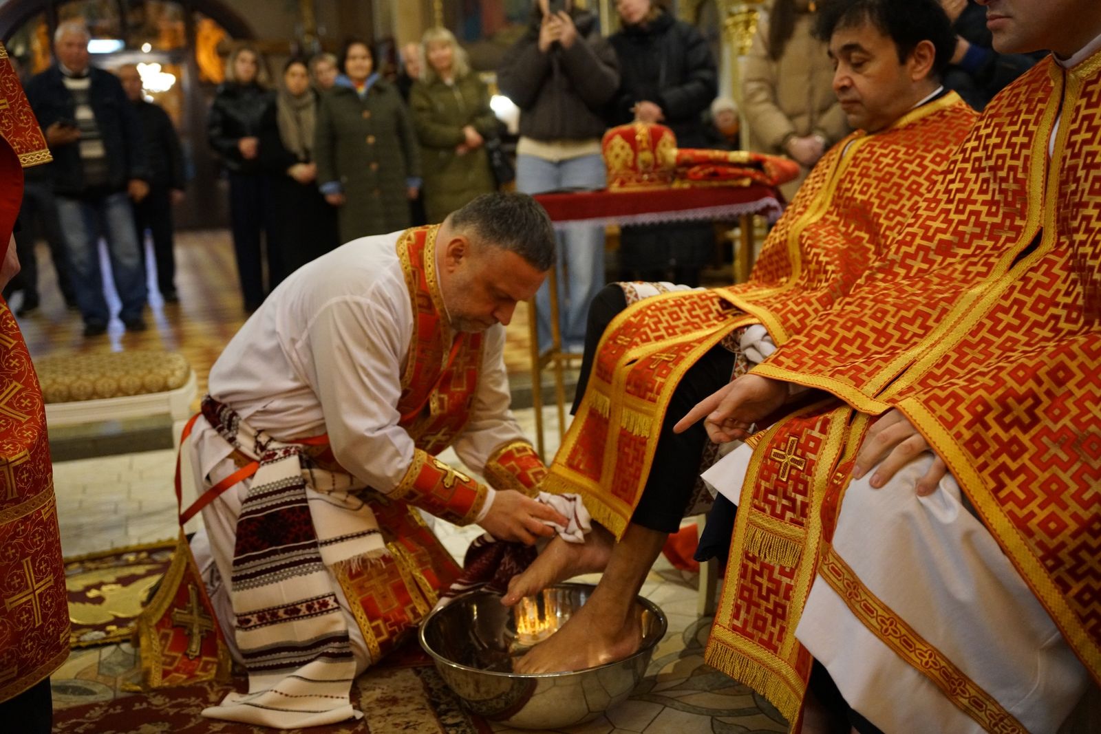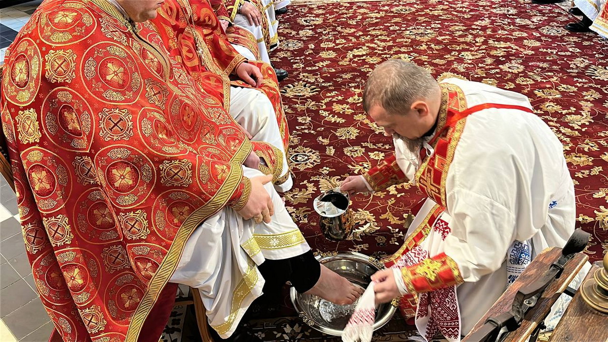 Після завершення Божественної Літургії відбувся Чин умивання ніг, в часі якого владика Максим, наслідуючи приклад Ісуса Христа, умив ноги 12 священнослужителям Екзархату. Цей глибоко символічний обряд є знаком смирення, любові та служіння ближньому.