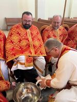 Також архиєрей звернув увагу душпастирів на значення умивання ніг Ісусом своїм апостолам. «Ми проповідуємо про любов Ісуса до цілого світу і часто згадуємо про любов Ісуса до кожного з нас. Це також стосується кожного з нас тут присутніх. Але хочу покласти на серце священникам те, що виявом тої любові є умивання ніг», — мовив апостольський екзарх.