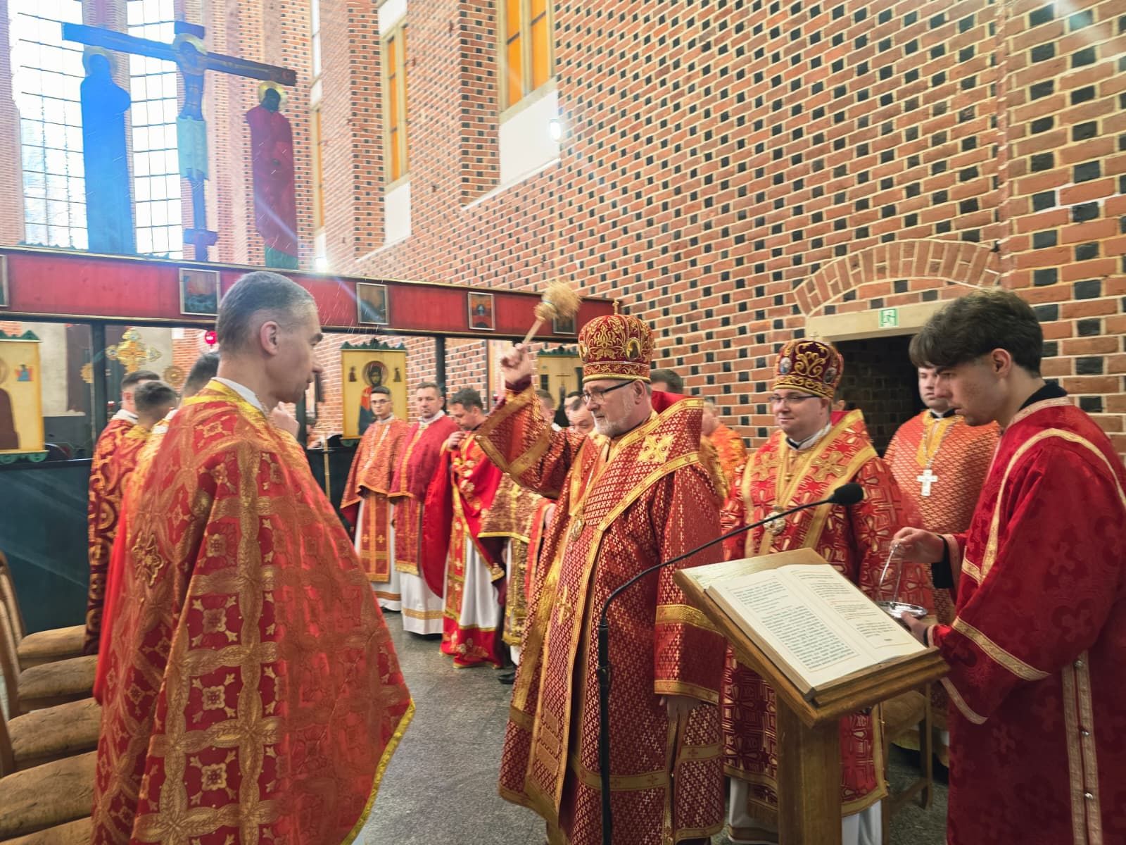 В Ольштині у греко-католицькому соборі у Великий четвер відбулося урочисте богослужіння, яке очолив владика Аркадій Трохановський. У Літургії святого Василія Великого взяли участь священники Ольштинсько-Гданської єпархії, які зібралися для спільної молитви та духовної єдності.