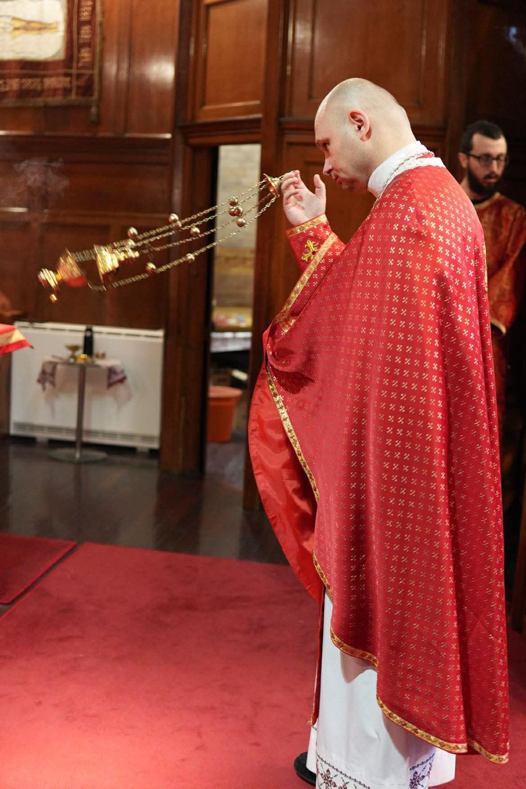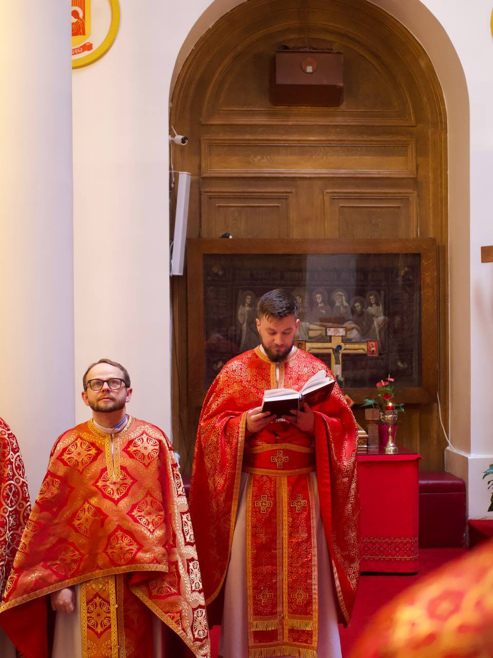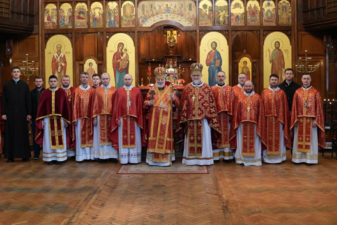 Вечірня з Божественною Літургією Святого Василія Великого відбулася і в Українському католицькому соборі Пресвятої родини в Лондоні. Владика Кеннет у проповіді привітав священників зі святом встановлення Таїнства Священства та подякував духовенству єпархії за їхню душпастирську опіку над вірними.