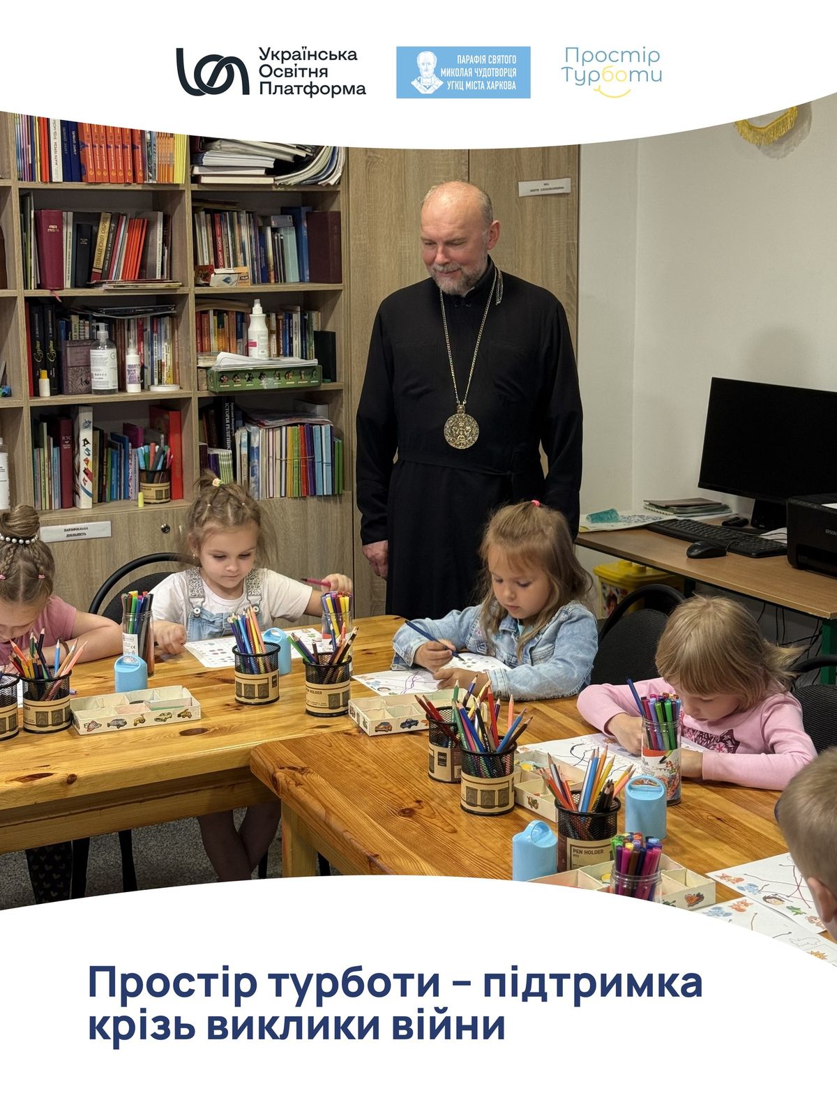 «Спочатку до нас приходили діти на заняття, які проводили сестри монахині та катехити. Але ми розуміли: треба більше. Так зʼявився Простір турботи — місце, де діти отримують не тільки знання, а й психологічну, духовну та емоційну підтримку», — розповідає владика Василій Тучапець, екзарх Харківський УГКЦ. Про це розповідає пресслужба Української освітньої платформи на власній фейсбук-сторінці.