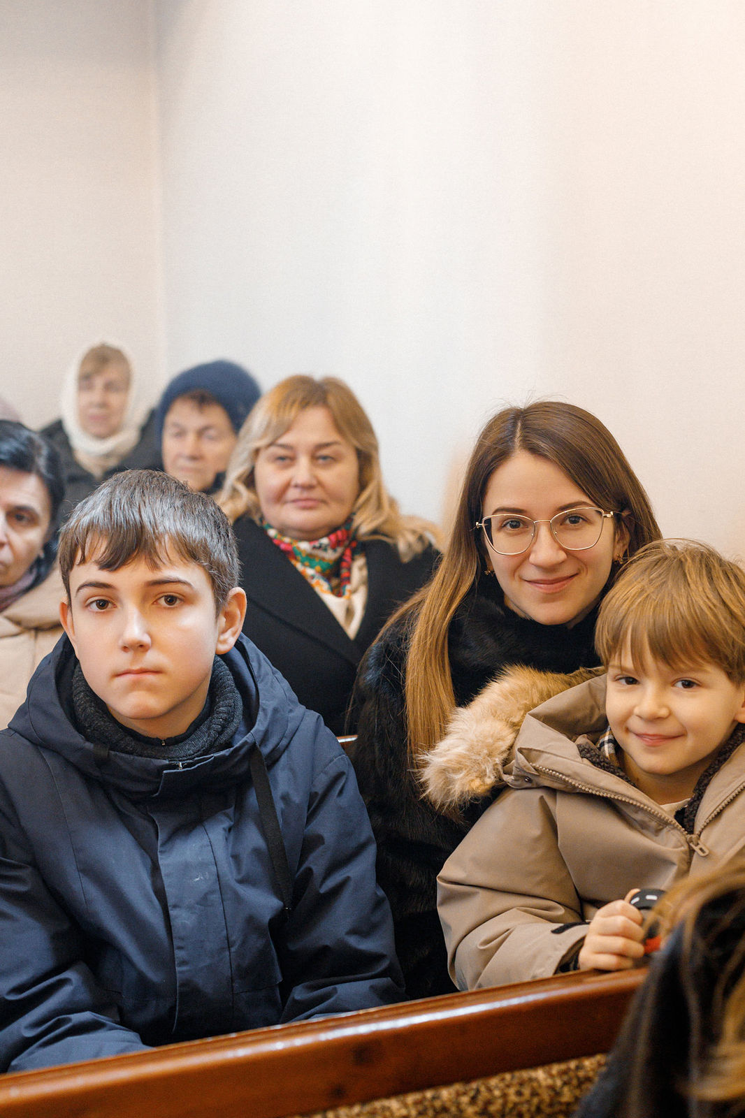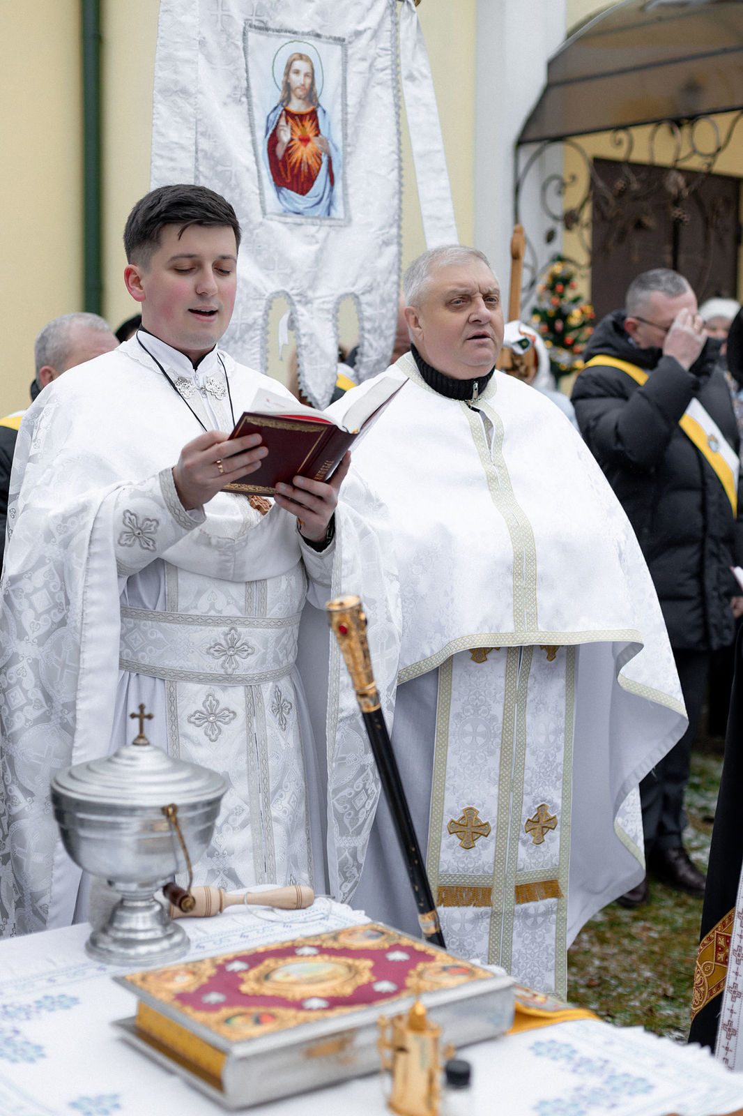Завершилося богослужіння колядою під баян за участі Лицарів Колумба із м. Броди.
