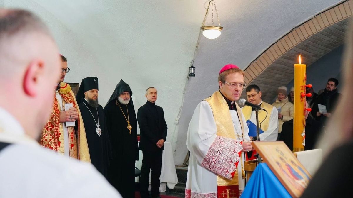Єпископ-помічник Київсько-Житомирської дієцезії РКЦ Олександр Язловецький, звертаючись до присутніх, розповів, що ординарій дієцезії Віталій Кривицький прагнув, аби ця міжконфесійна молитва відбулася саме у храмі святого Миколая ще тоді, коли він не був переданий у користування громаді РКЦ. Єпископ звернув увагу й на умови, в яких проходила молитва: через вибиті вітражі внаслідок нещодавньої російської атаки основне приміщення храму залишається холодним, тож молебень відбувся у підвальному просторі, який вдалося обігріти. Він подякував християнам України за підтримку у прагненні римо-католиків повернути храм у своє користування.