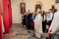 Після Літургії владика зустрівся з молодіжною спільнотою «Обнова». Під час розмови йшлося про сучасні виклики, про процес становлення Київської архиєпархії та місію Церкви в теперішніх обставинах.