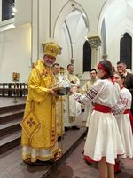 Центральною духовною подією у Вайле стала Божественна Літургія, в якій узяли участь місцевий єпископ Римо-Католицької Церкви в Данії Чеслав Козун і парох о. Ґрегор Пах. У проповіді, роздумуючи над євангельським уривком неділі після Богоявлення (Мт. 4, 12–17), владика Богдан звернув увагу на «приховане» життя Ісуса в Назареті як джерело сенсу для щоденної людської повсякденності. Він підкреслив значення родинного дому як першої школи віри, молитви й праці, а також наголосив на потребі відновлення передавання віри між поколіннями. Особливо зворушливо прозвучали слова про дім як простір любові й безпеки, що має особливе значення для українців, змушених залишити батьківщину через війну.