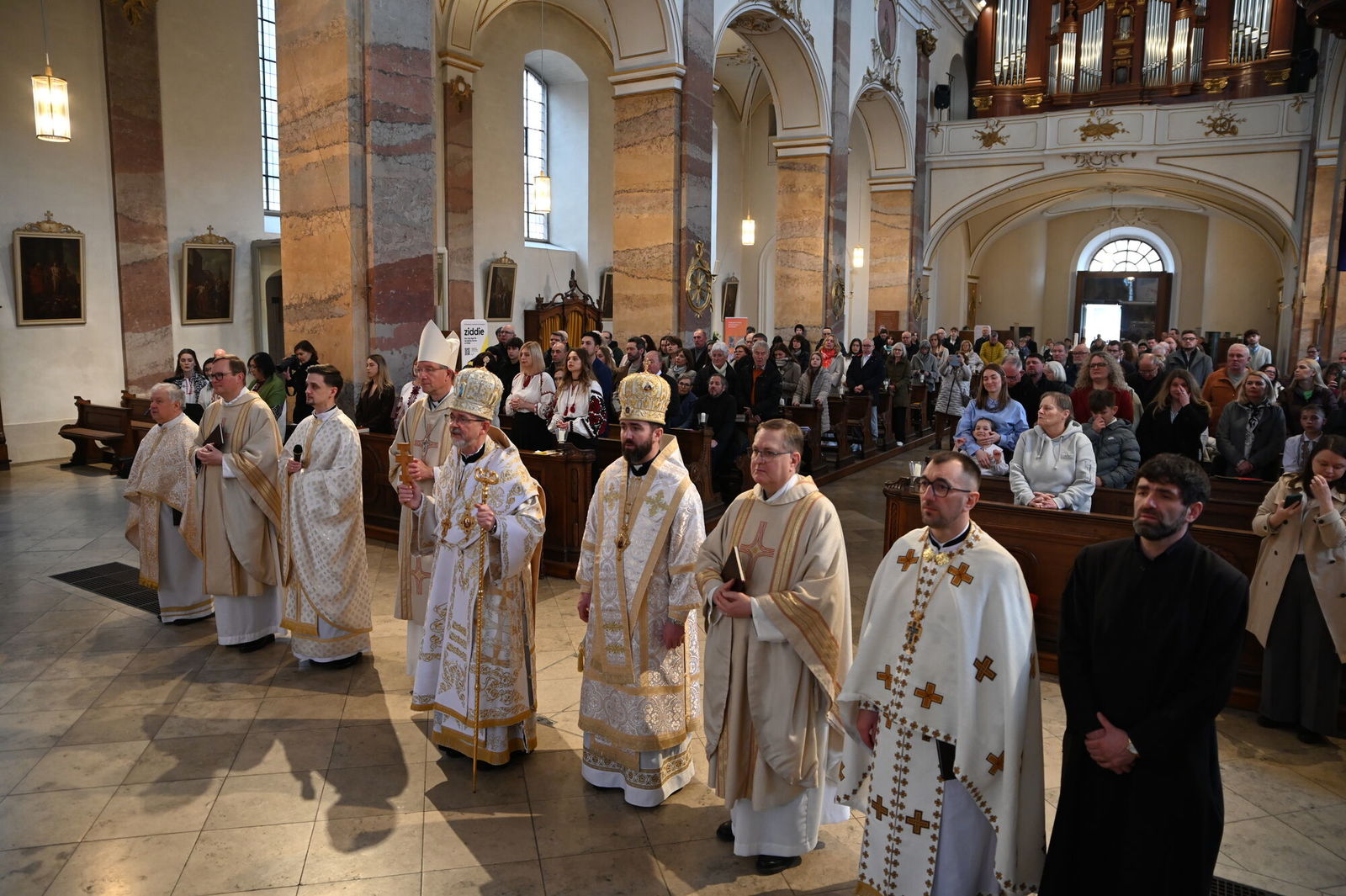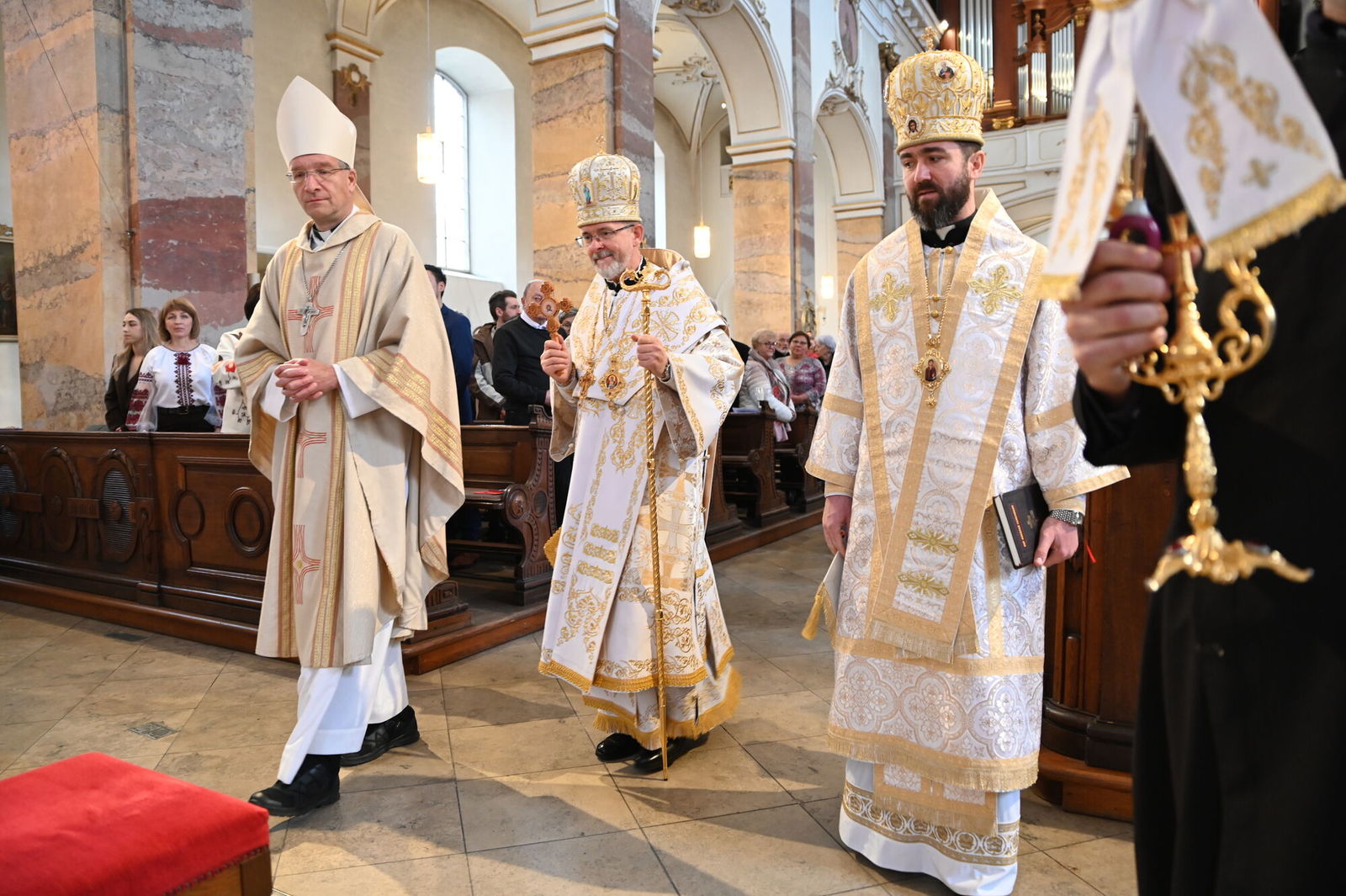 До слова, в Архиєрейській Божественній Літургії також взяли участь: єпископ-помічник Івано Франківської архиєпархії Микола Семенишин, єпископ єпархії Фульда Михаїл Гербер, духівник з Айштету о. Іван Качала, ректор семінарії Фульди о. Дірк Ґертнер, парох парафії Святого Сімпліція, Фаустина і Беатрікс о. Штефан Бус, адміністратор душпастирства Святої мчц. Віри, Надії, Любові і матері їх Софії у м. Фульда о. Іван Гнатів, у співслужінні протодиякона Івана Костецького.