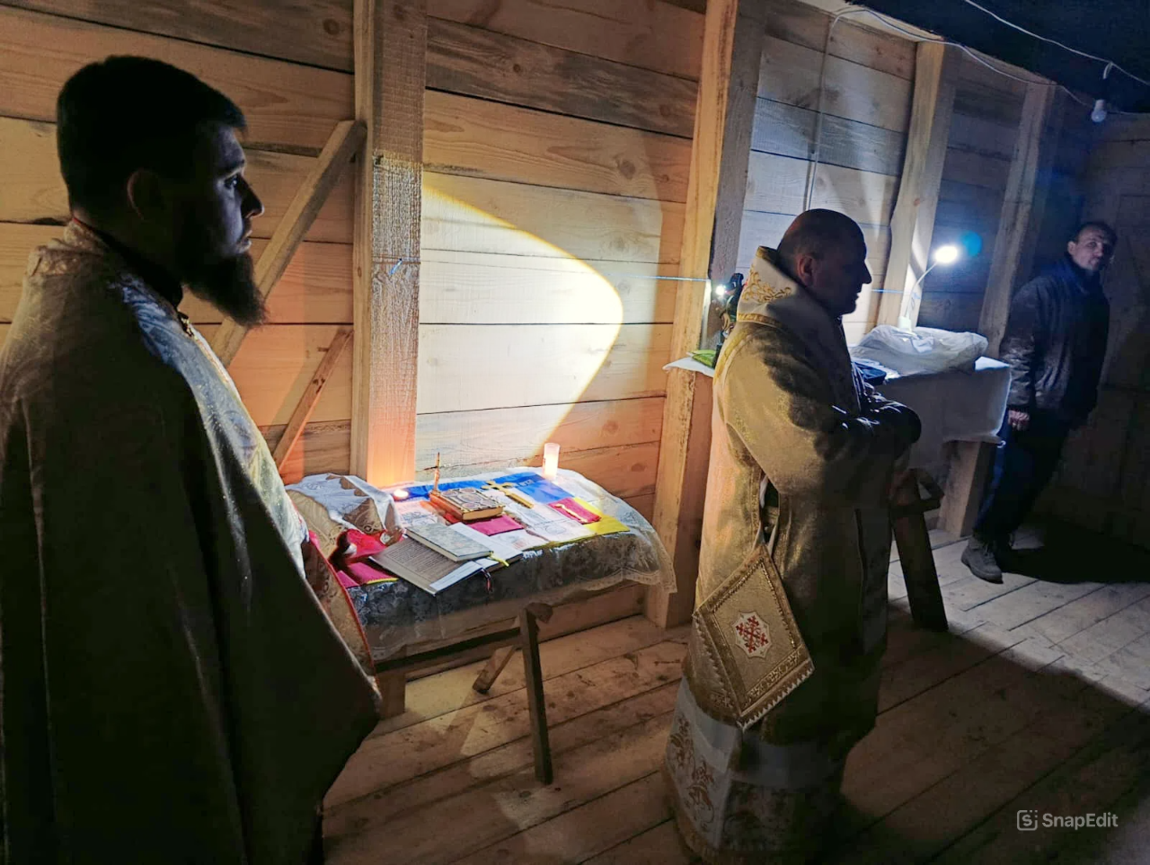 Як розповів військовий капелан о. Петро Мандзяк, особливим і зворушливим моментом різдвяної поїздки стала Божественна Літургія, яку владика Богдан звершив безпосередньо з військовими у бліндажі.