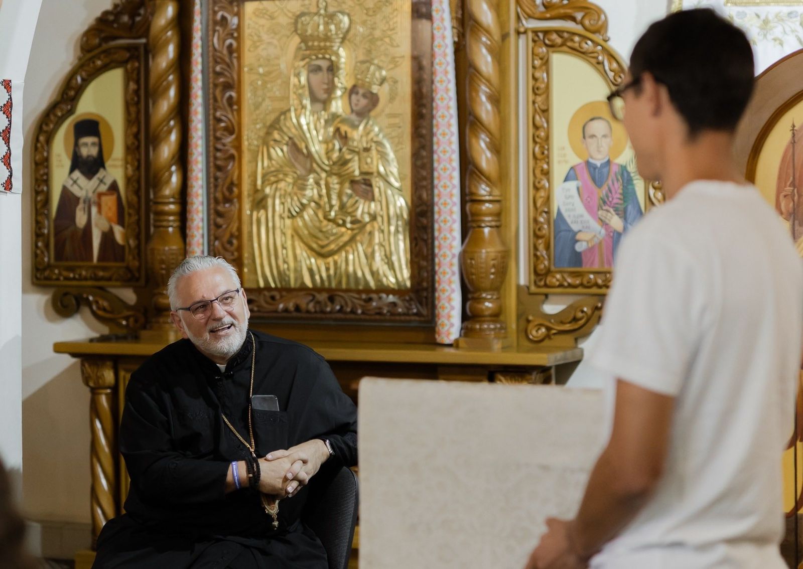 Зустріч проходила у живому діалозі: молодь слухала владику Браєна, а він, своєю чергою, уважно слухав їхні свідчення та історії.