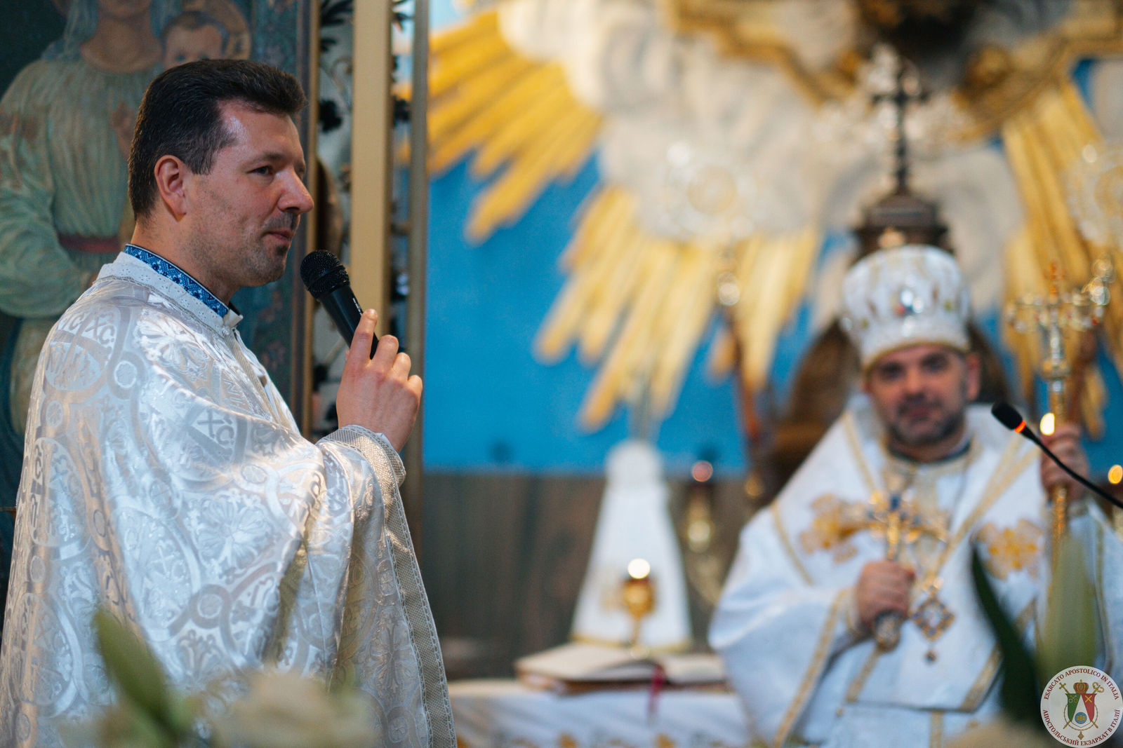 Особливу вдячність владика висловив заслуженому екзарху владиці Діонісію за його багатолітнє жертовне служіння: «Дякуємо владиці Діонісію, який стільки років посвячено трудився тут, на італійській землі, і далі молиться за нас. Він — наш духовний батько, який продовжує супроводжувати нас порадою, присутністю та молитвою».