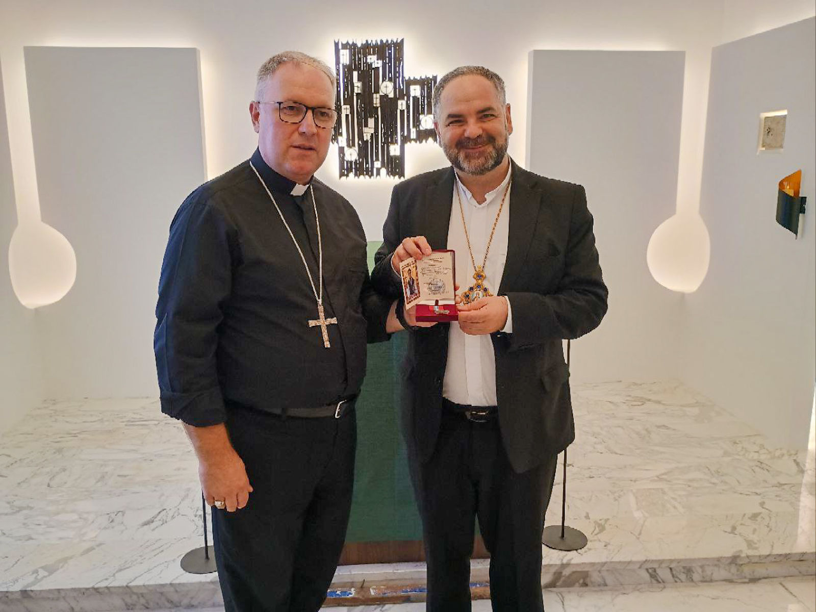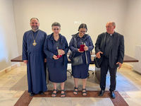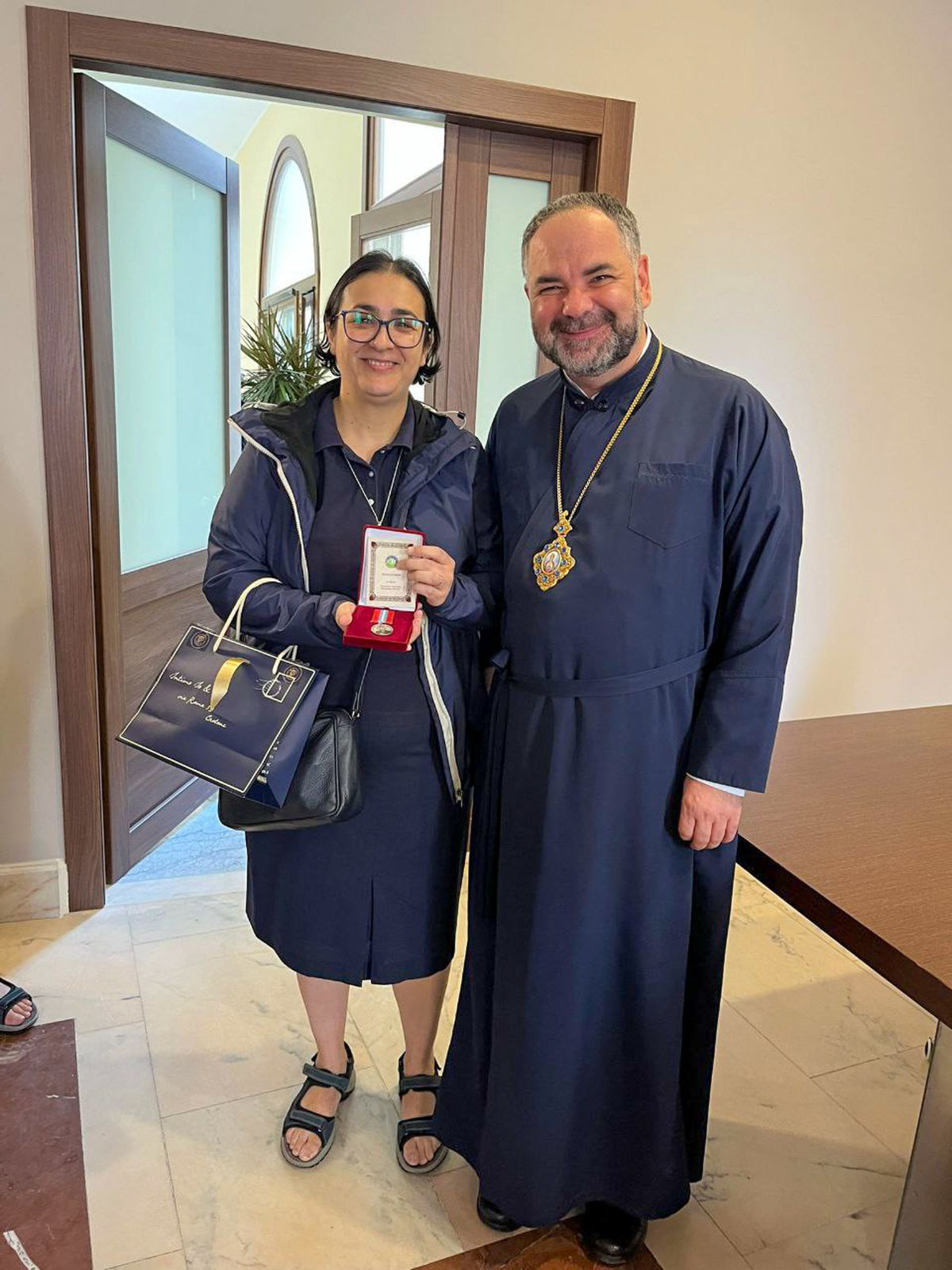 Користуючись нагодою, владика Григорій подякував усім, хто допомагає Україні, та на прохання пароха с. Страдч о. Івана Колтуна, вручив архиєпископу Альберто Торріані пам’ятну медаль блаженного мученика Володимира Прийми.