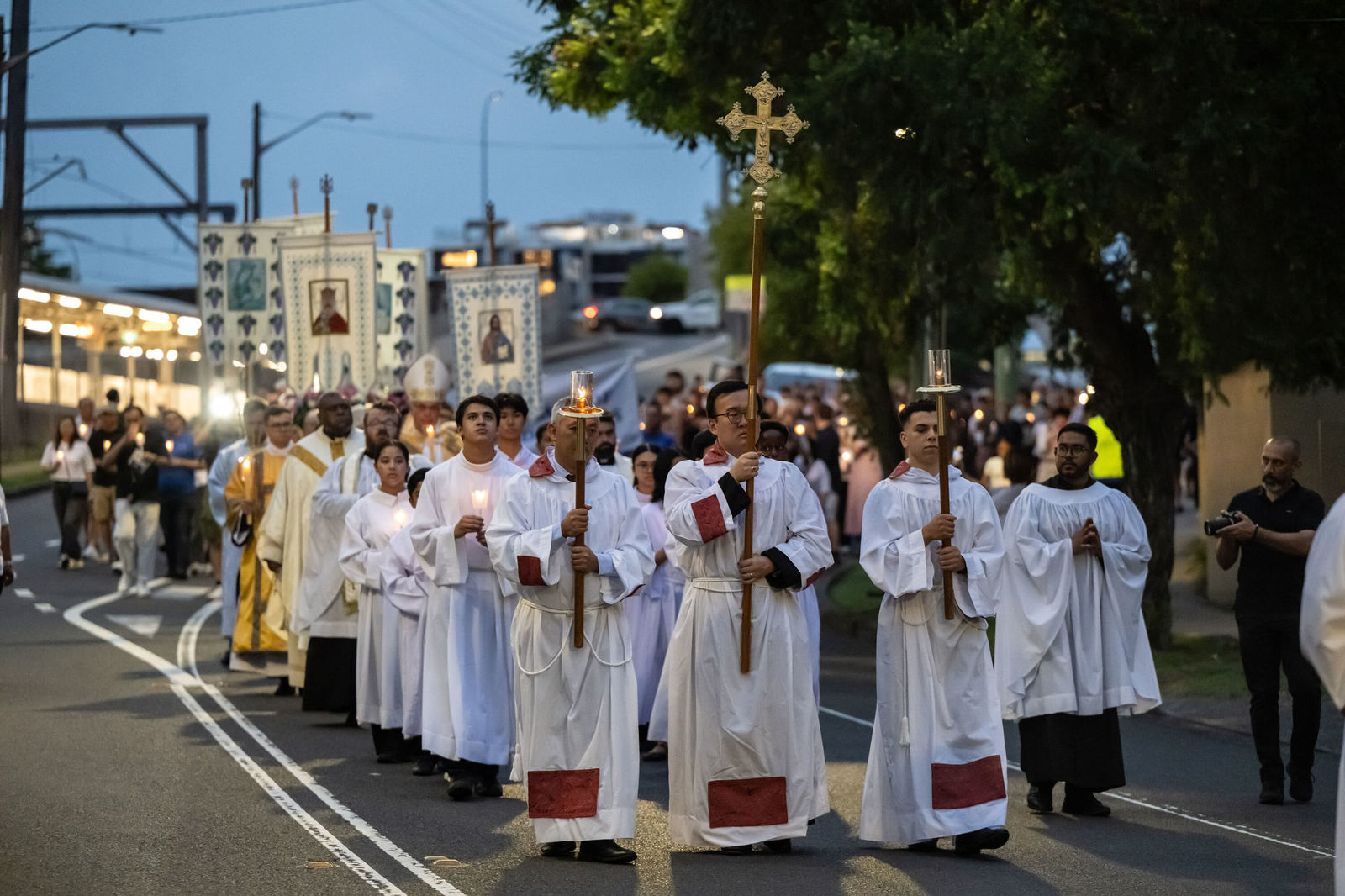 Після богослужіння вірні взяли участь у процесії вулицями району Лідкомб. Попереду несли статую Богоматері Доброго Успіху, а учасники спільно молилися вервицю. Процесія тривала близько години та завершилася в храмі св. Йоакима. Мешканці району спостерігали за ходою зі своїх домівок, а перехожі зупинялися, щоб зробити фото чи відео на згадку про цю подію.