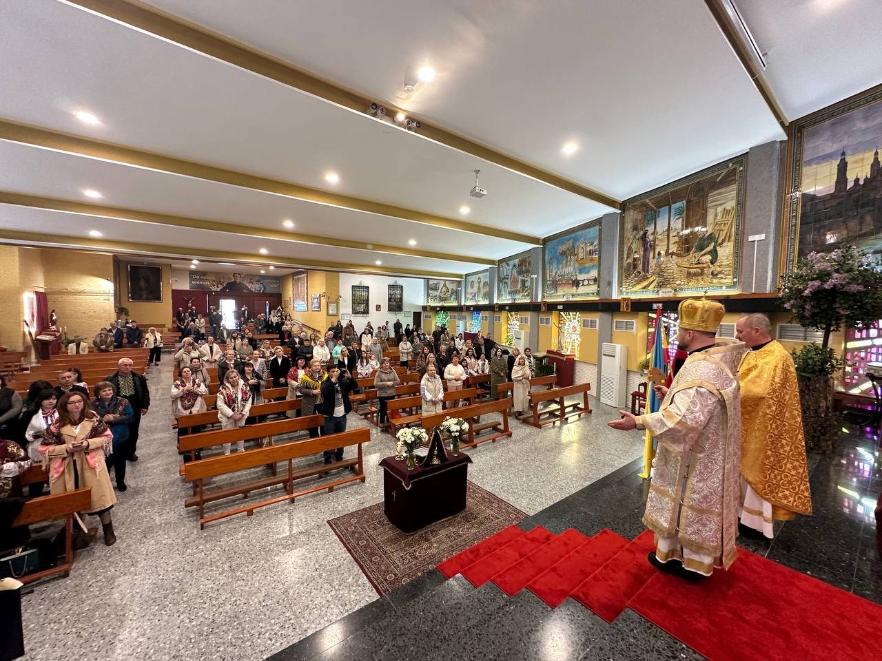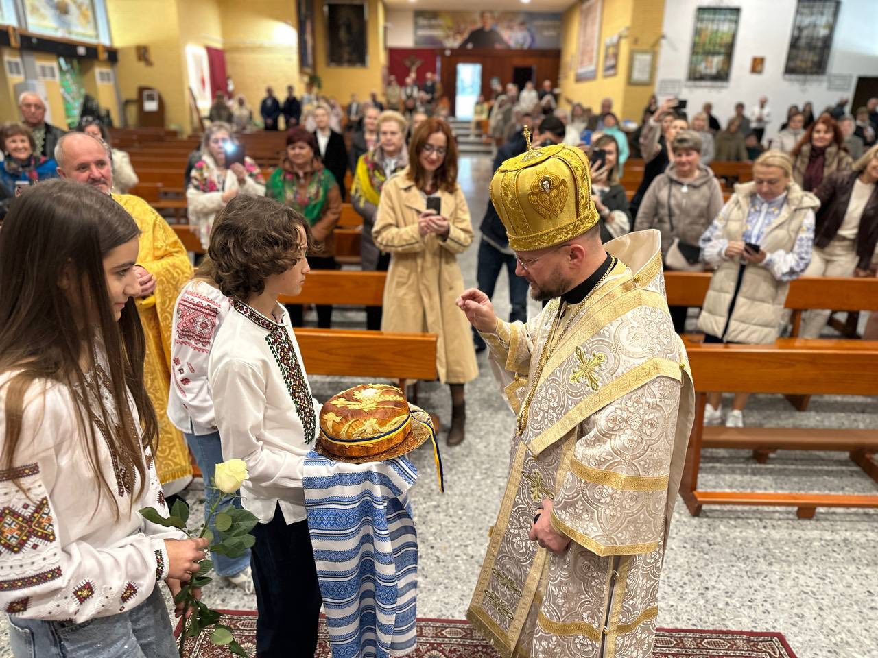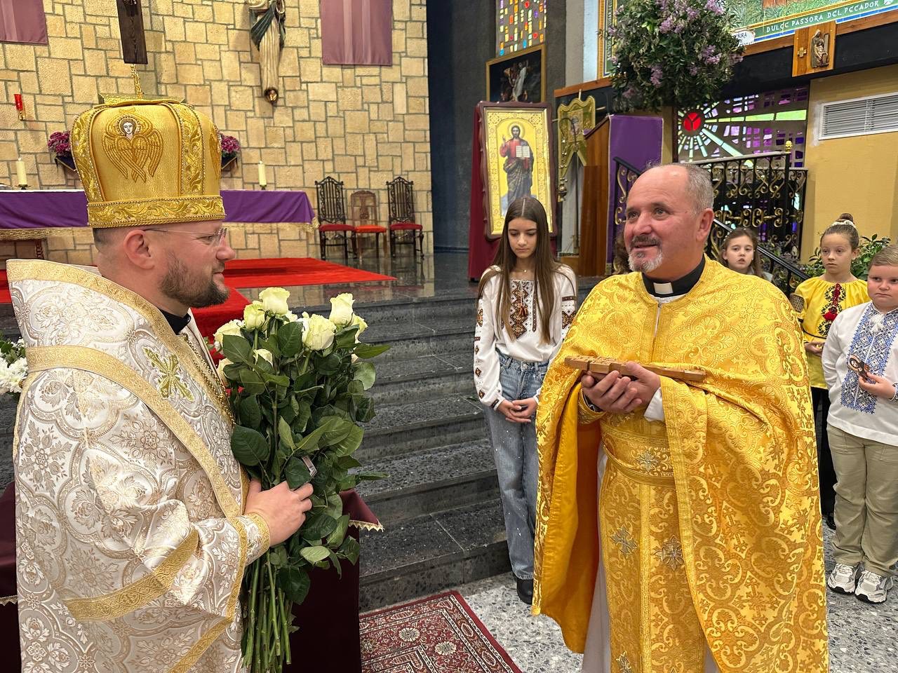 Після богослужіння відбулась молитва за мир в Україні. Відтак владика Степан поспілкувався з парафіянами, передав вітання від Глави УГКЦ Блаженнішого Святослава і подякував за постійну допомогу, яку громада надає Україні в час війни. Про це повідомляє пресслужба Пасторально-міграційного відділу УГКЦ.