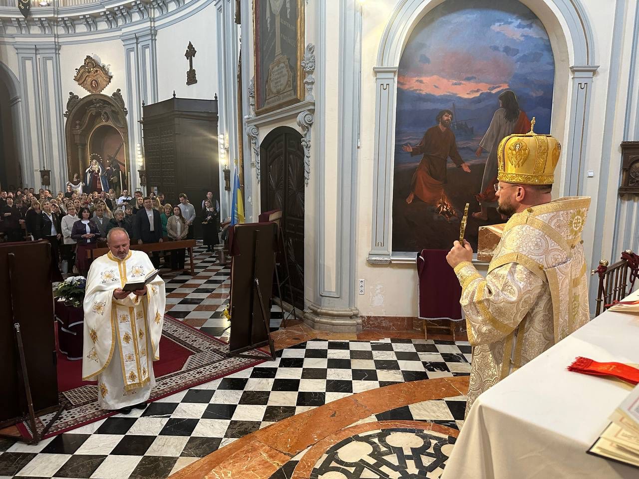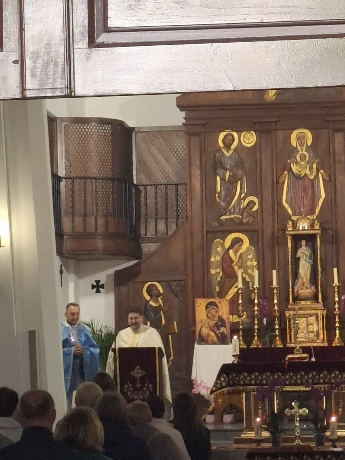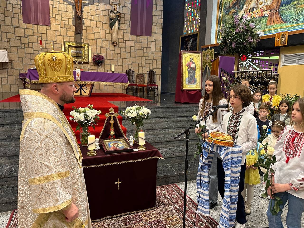 Після богослужіння відбулась молитва за мир в Україні. Відтак владика Степан поспілкувався з парафіянами, передав вітання від Глави УГКЦ Блаженнішого Святослава і подякував за постійну допомогу, яку громада надає Україні в час війни. Про це повідомляє пресслужба Пасторально-міграційного відділу УГКЦ.