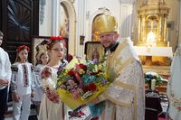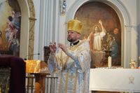 «Владико, щиро дякую за вашу апостольську візитацію, за Боже Слово, за благословення нашої парафії, яке ми довго чекали. Як діти чекають свого батька, так священники і вірні — єпископа, — звернувся до Голови ПМВ настоятель парафії і додав. — Я хочу також нагадати усім нашим людям, що прийти на Службу Божу — це половина справи. Христос каже: „Прийдіть до мене всі“. Але головне — причащатись. Коли людина прийняла Христа — вона є нагодована. Без причастя вона йде додому голодна».
