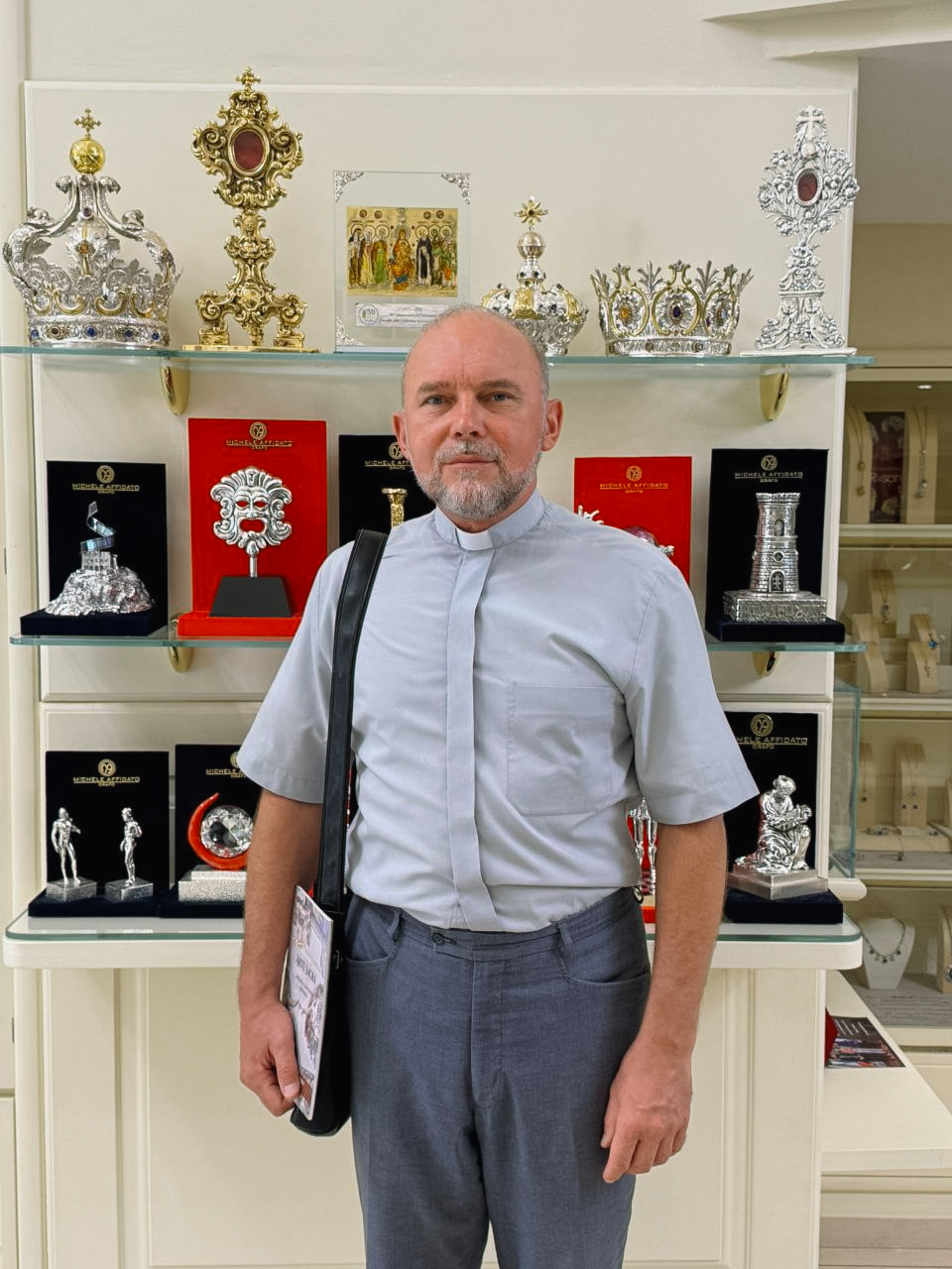 Іншою важливою подією стала зустріч владики Василя з головою Асоціації «Santa Critella», доктором Антоніо Аркурі. Пан Антоніо вже протягом трьох років безкорисливо надає церковній громаді м. Кротоне складське приміщення для збору гуманітарної допомоги, яку згодом відправляють в Україну. Владика щиро подякував йому за постійну доброчинність та підтримку. Також під час зустрічі єпископ мав нагоду ознайомитися з діяльністю агенції пана Антоніо та з історією міста Кротоне, відображеною у фресках цього закладу. Варто додати, що автором розписів є український художник Віталій Паламарчук.
