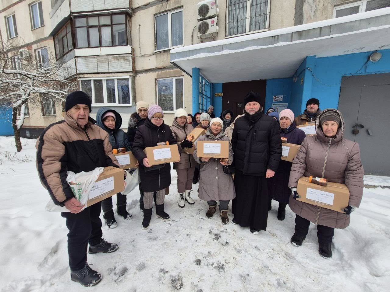 Однак, місцеві мешканці, зокрема люди старшого віку потребують допомоги. Тому владика Василь Тучапець роздав людям похилого віку та людям з інвалідністю продуктові набори від Патріаршої фундації «Мудра справа».