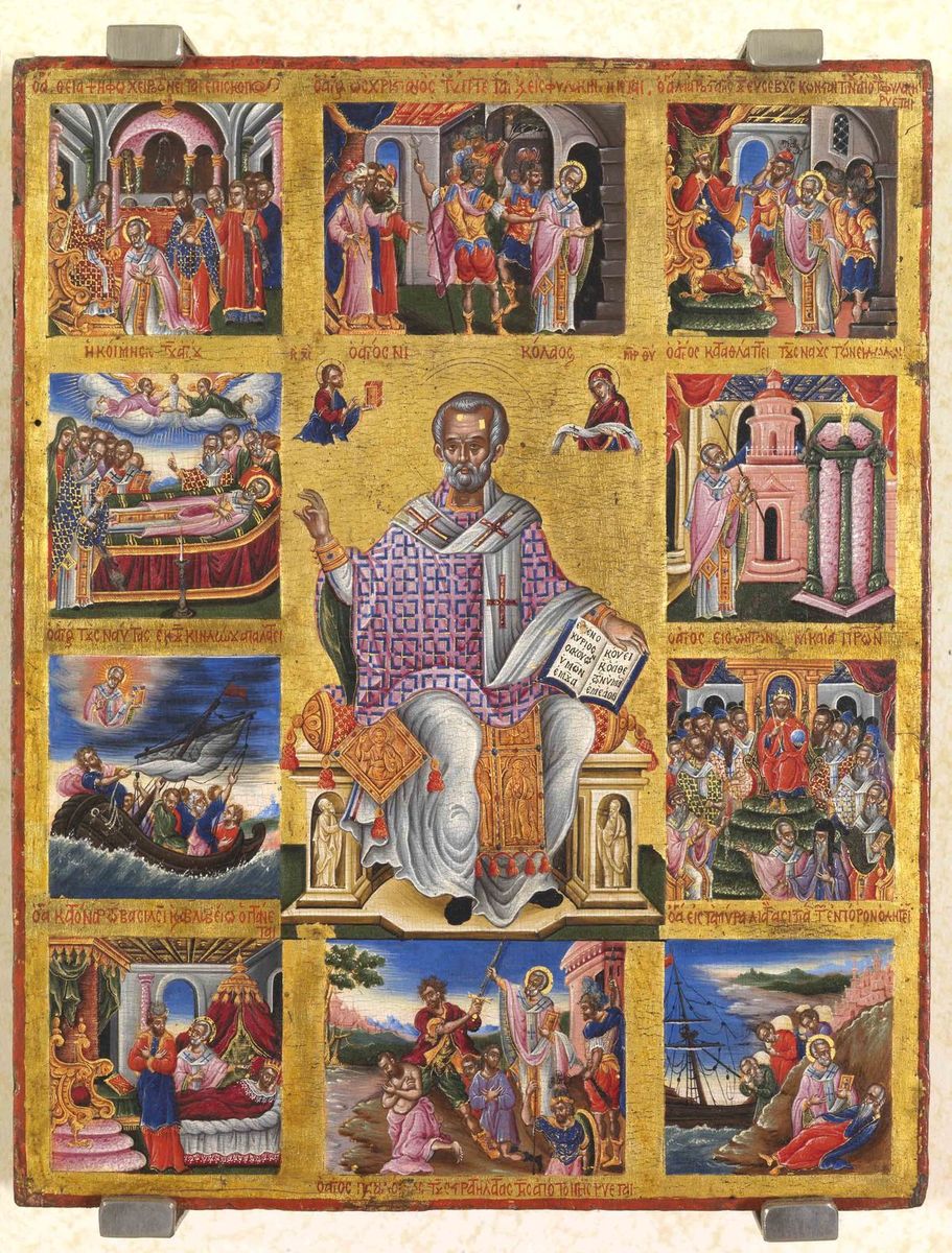 Часто на іконах святого Миколая зображають зі святим Євангелієм в руках, і це невипадково. Життя та служіння цього Божого угодника стали живим свідченням сповнення євангельських блаженств, котрі є суттю всієї Христової Благовісті, до яких впроваджує нас сьогоднішнє євангельське читання. Тому в тропарі празника св. Миколая співаємо: «Христове Євангеліє, преподобний, сповнивши, положив ти душу за людей твоїх…».