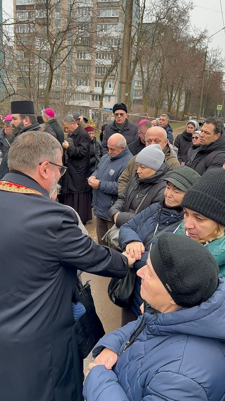 Після молитви Блаженніший Святослав та Апостольський нунцій поспілкувалися з мешканцями будинку на вул. 15 Квітня, висловивши їм підтримку і співчуття від усієї Церкви.