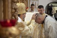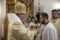 Під час Літургії Блаженніший Святослав уділив священничі свячення дияконам Віталію Олійнику та Мар’яну Довганику, а також дияконські свячення Вадиму Поліщуку, випускникам Київської Трьохсвятительської духовної семінарії.