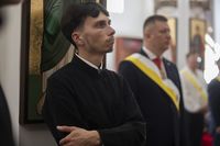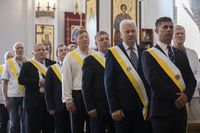 На завершення Літургії в семінарійному храмі відбулася церемонія введення в уряд національних офіцерів та регіональних делегатів Національної ради Лицарів Колумба в Україні.