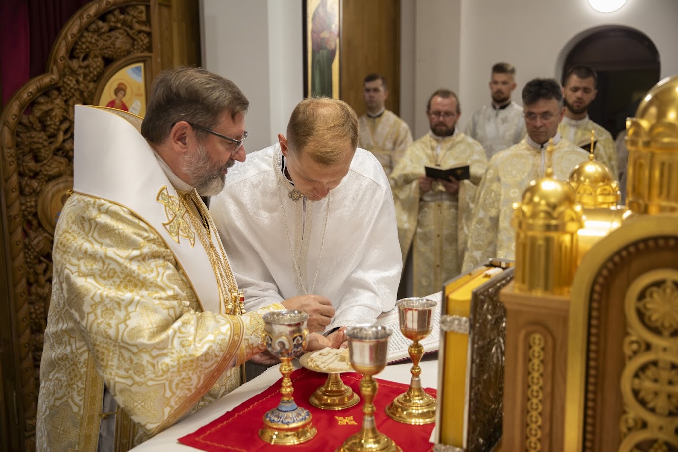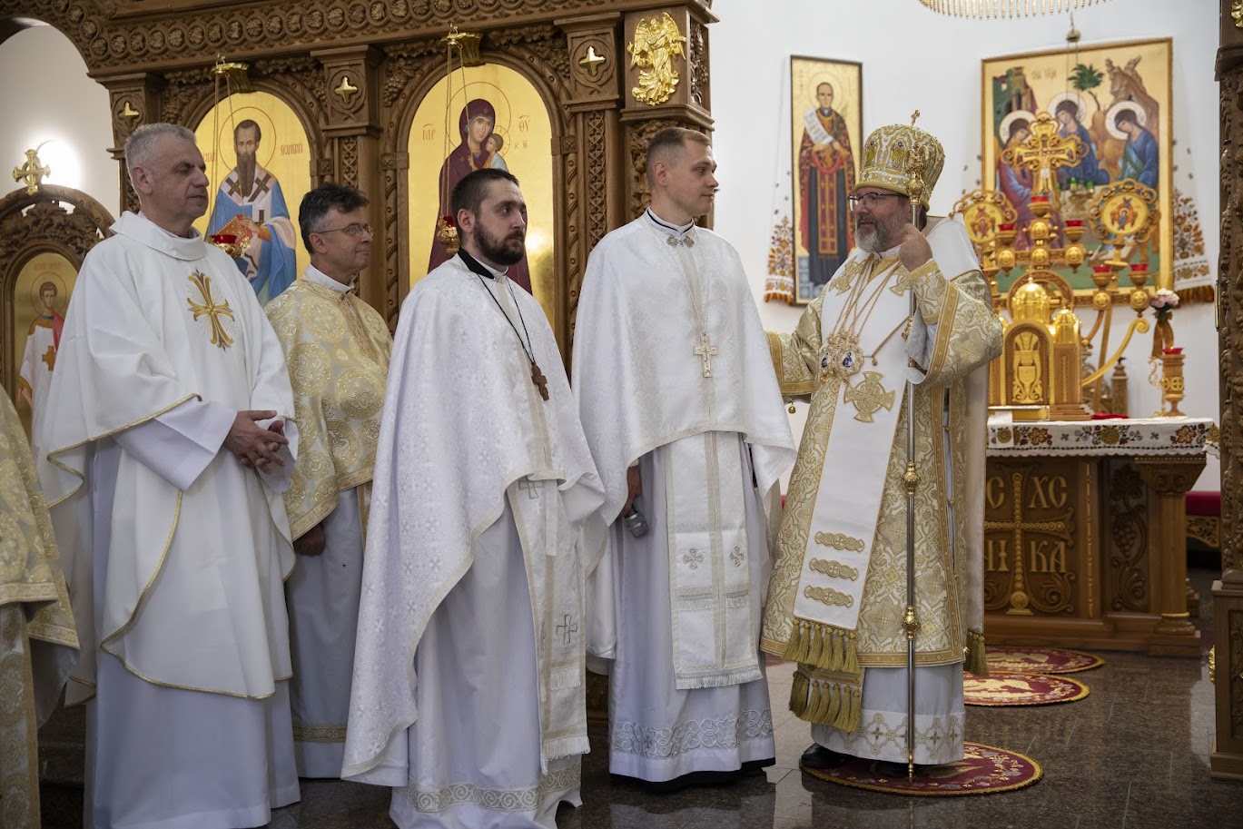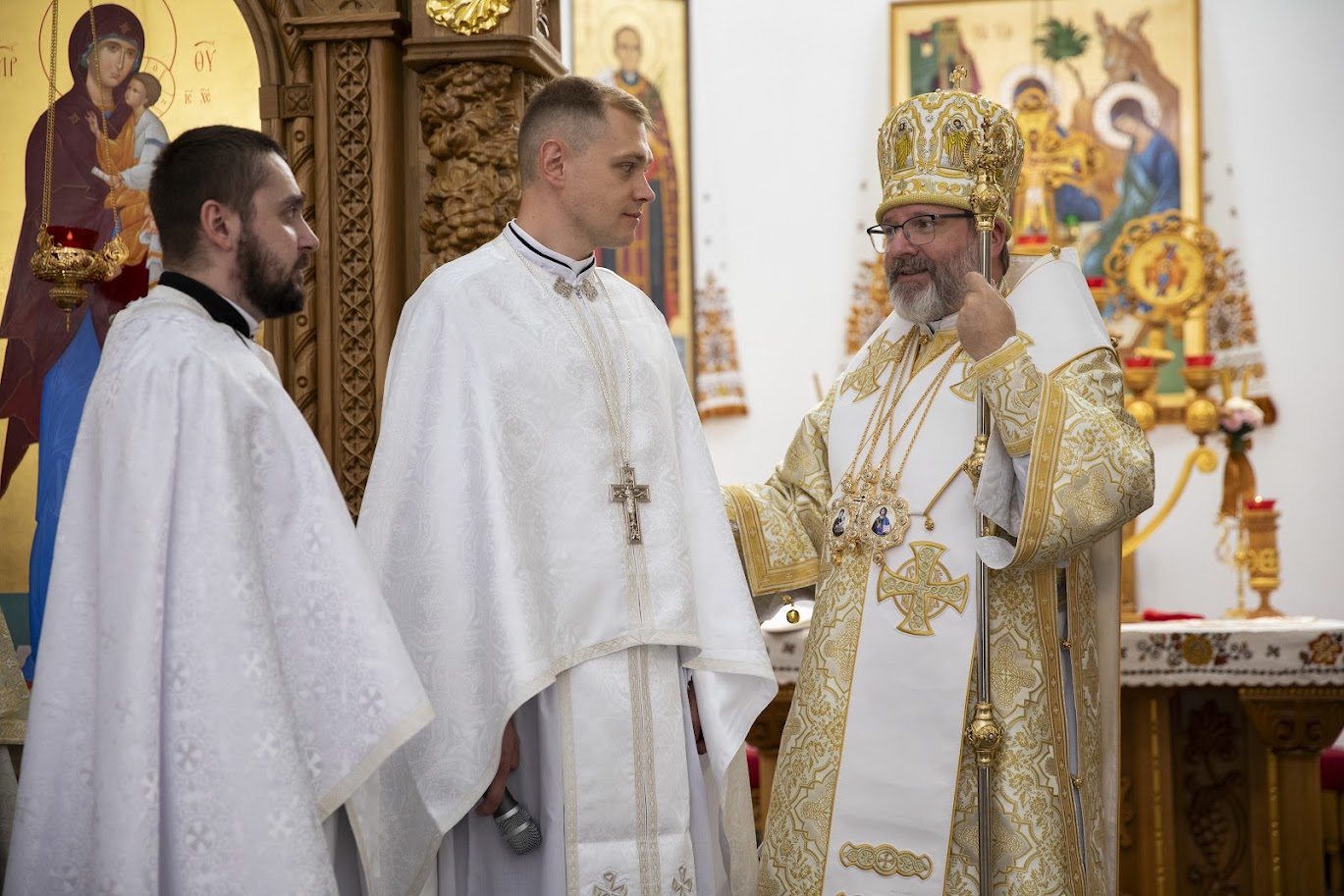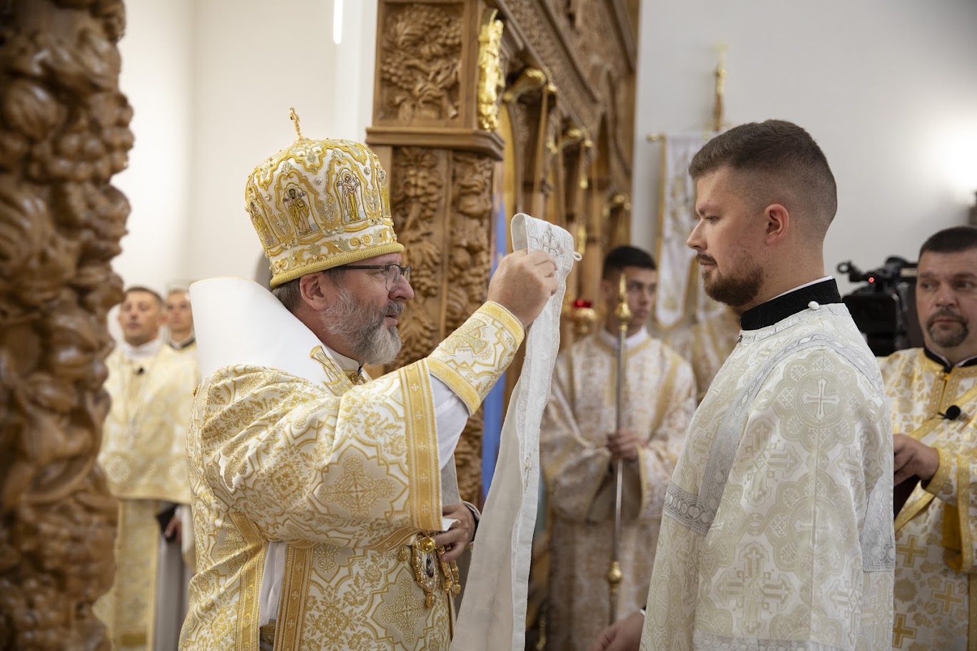 Під час Літургії Блаженніший Святослав уділив священничі свячення дияконам Віталію Олійнику та Мар’яну Довганику, а також дияконські свячення Вадиму Поліщуку, випускникам Київської Трьохсвятительської духовної семінарії.