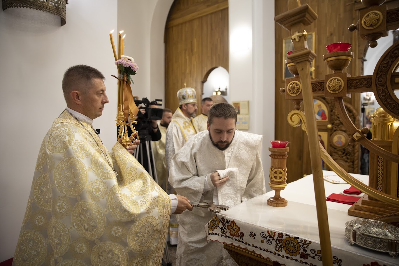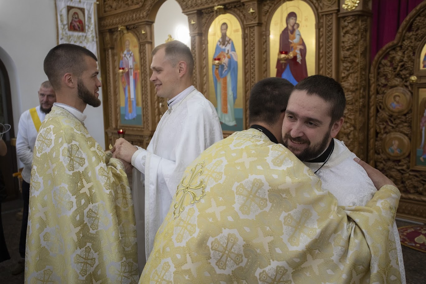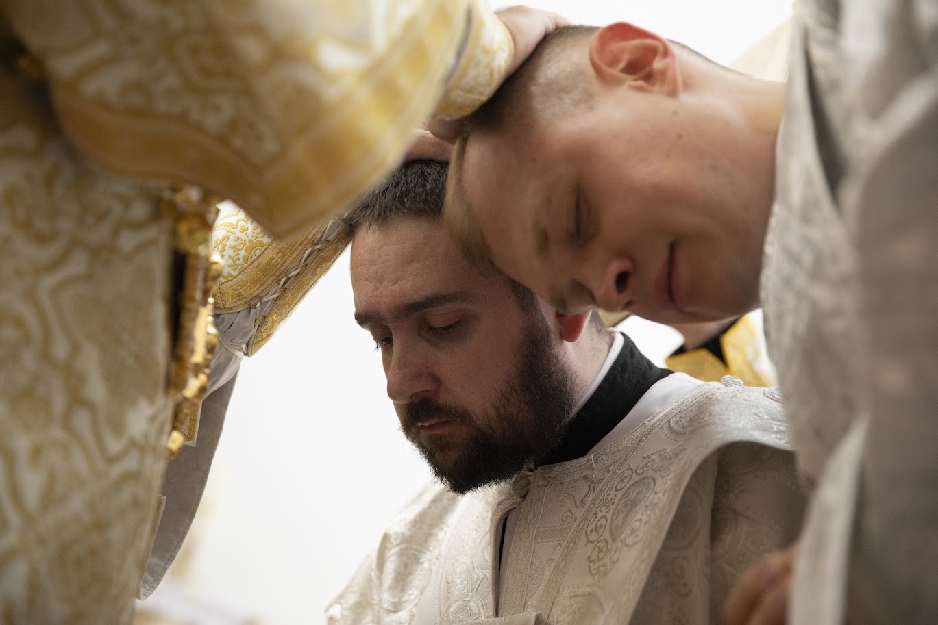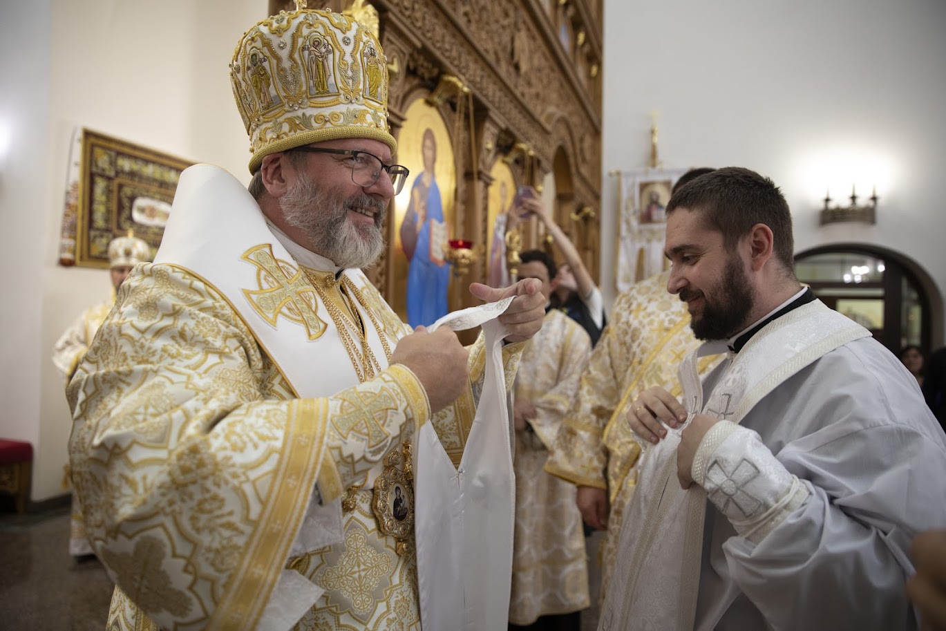 Під час Літургії Блаженніший Святослав уділив священничі свячення дияконам Віталію Олійнику та Мар’яну Довганику, а також дияконські свячення Вадиму Поліщуку, випускникам Київської Трьохсвятительської духовної семінарії.