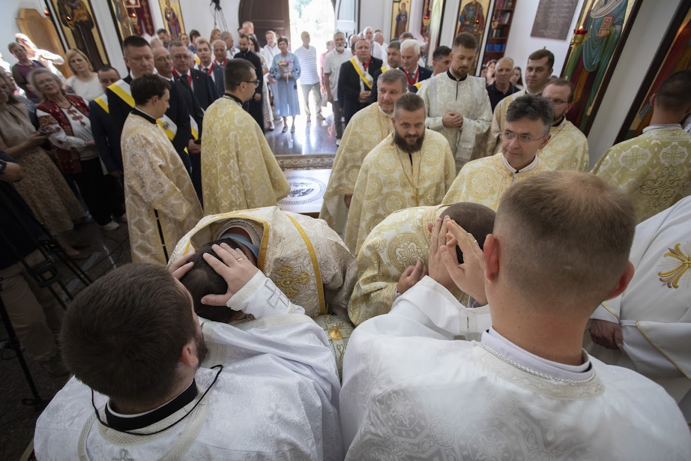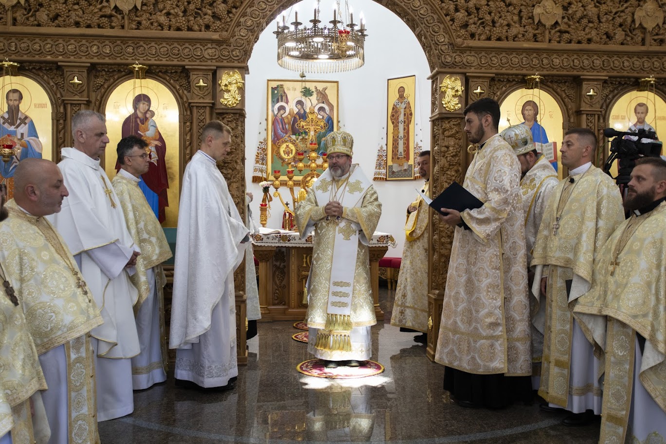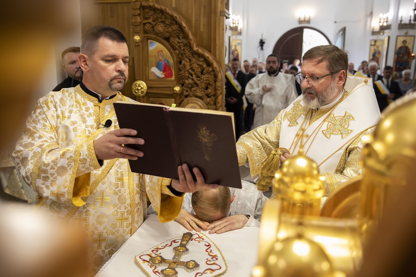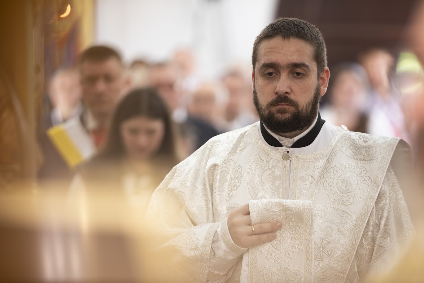 Під час Літургії Блаженніший Святослав уділив священничі свячення дияконам Віталію Олійнику та Мар’яну Довганику, а також дияконські свячення Вадиму Поліщуку, випускникам Київської Трьохсвятительської духовної семінарії.