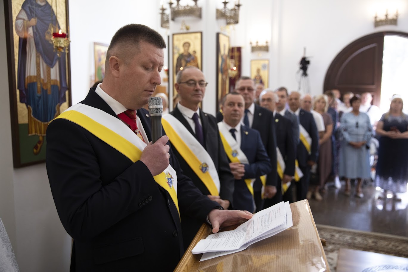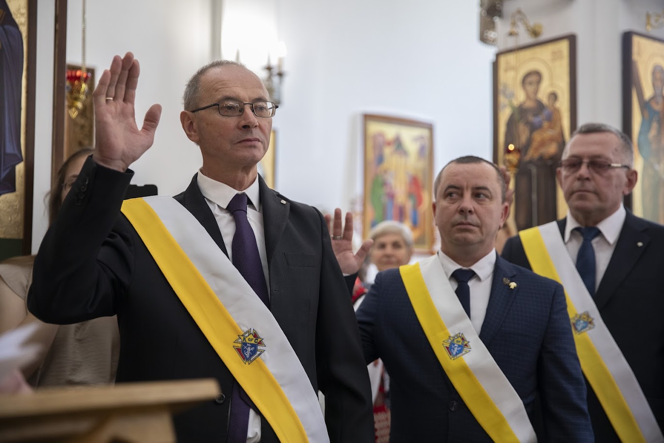 На завершення Літургії в семінарійному храмі відбулася церемонія введення в уряд національних офіцерів та регіональних делегатів Національної ради Лицарів Колумба в Україні.