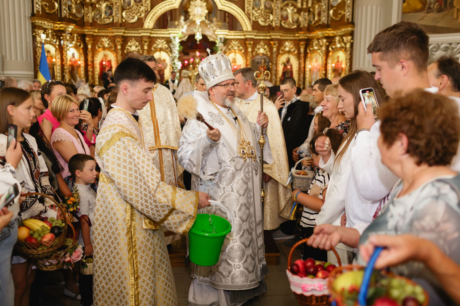 Завершилося богослужіння традиційним святковим окропленням первоплодів з нагоди свята Преображення.