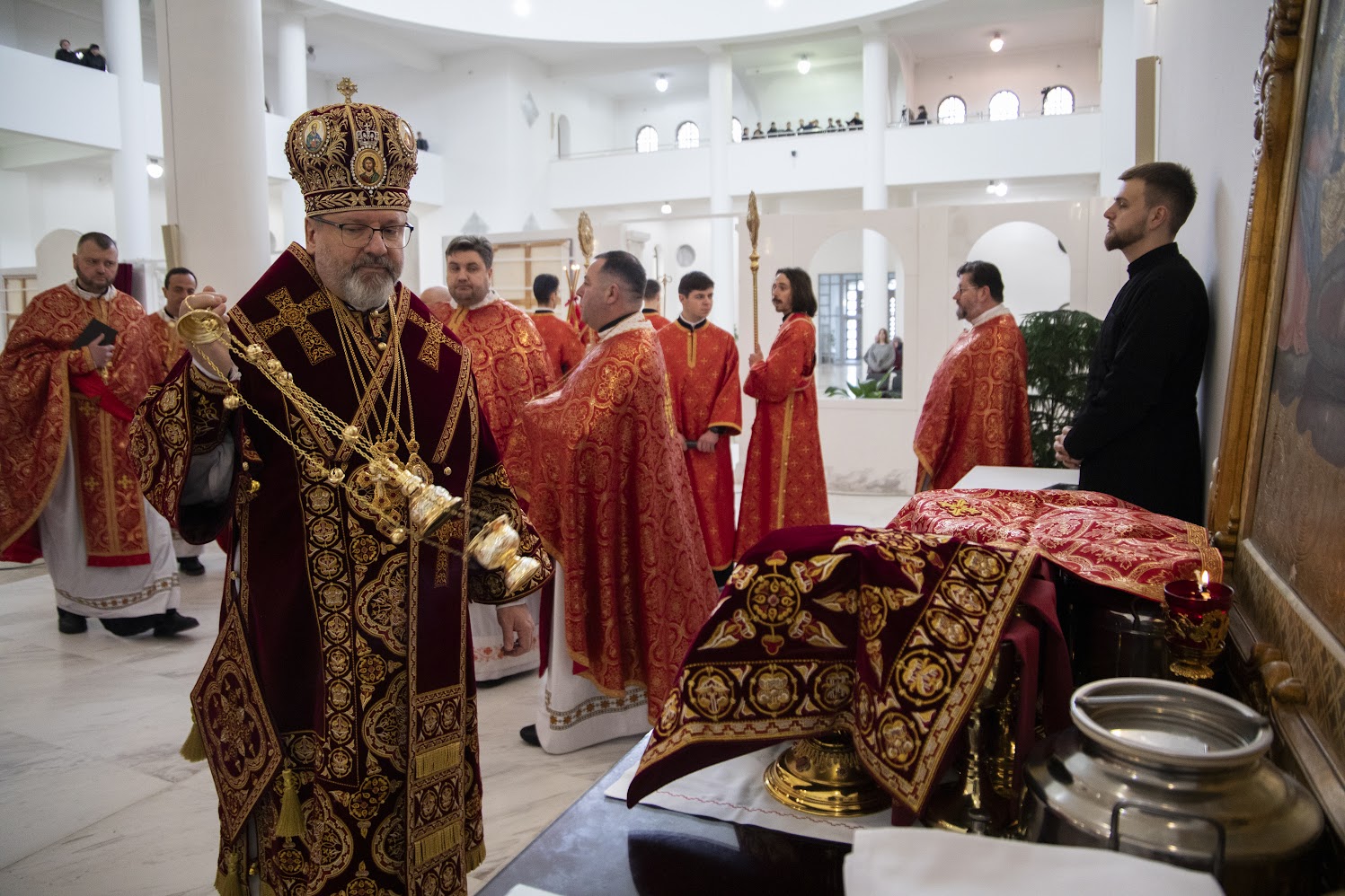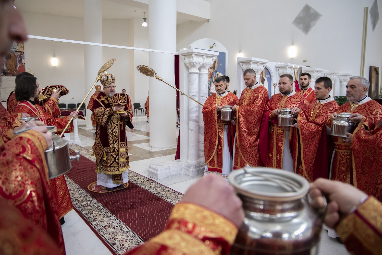 У Великий четвер, 9 квітня, у Патріаршому соборі в Києві Отець і Глава УГКЦ Блаженніший Святослав очолив Вечірню з Літургією Василія Великого. Під час проповіді Предстоятель звернув особливу увагу на дар священства та закликав душпастирів не намагатися «щось робити для Бога», а дозволити Христові діяти через них, стаючи живою часткою Його служіння стражденному народові України.