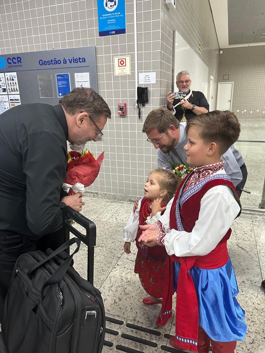 В аеропорту Куритиби Главу Церкви та членів Синоду тепло зустріли архиєпископ і митрополит Куритибський Володимир Ковбич, єпископ Прудентопольської єпархії Мирон Мазур, а також єпископ єпархії Покрова Пресвятої Богородиці в Аргентині Даниїл Козлінський разом зі священниками та мирянами. Про це повідомляє Департамент інформації УГКЦ.