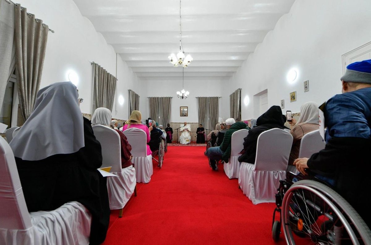 Папу також привітав вислужений архиєпископ Алжира Поль Дефарж, який зараз проживає в осередку. «Ваш візит, Святіший Отче, утверджує цей дім у його місії: свідчити про безкорисливу Божу любов до всіх Його дітей, а особливо до найбідніших», — наголосив архиєпископ.