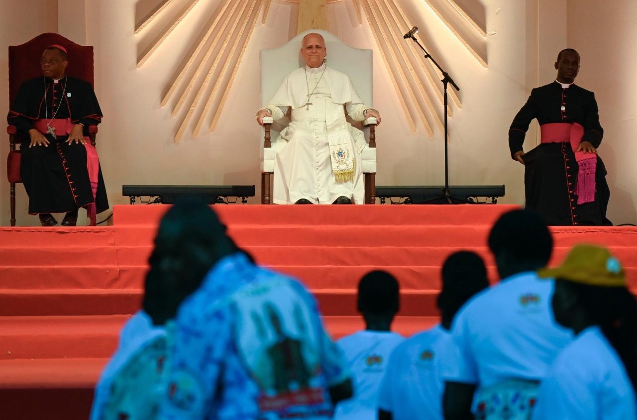 В останній повний день своєї Апостольської подорожі Африкою Папа Лев відслужив Месу в другій за величиною церкві континенту, сказав ув’язненим, що «ніхто не виключений з Божої любові», і спостерігав, як молодь Бати танцює під дощем.