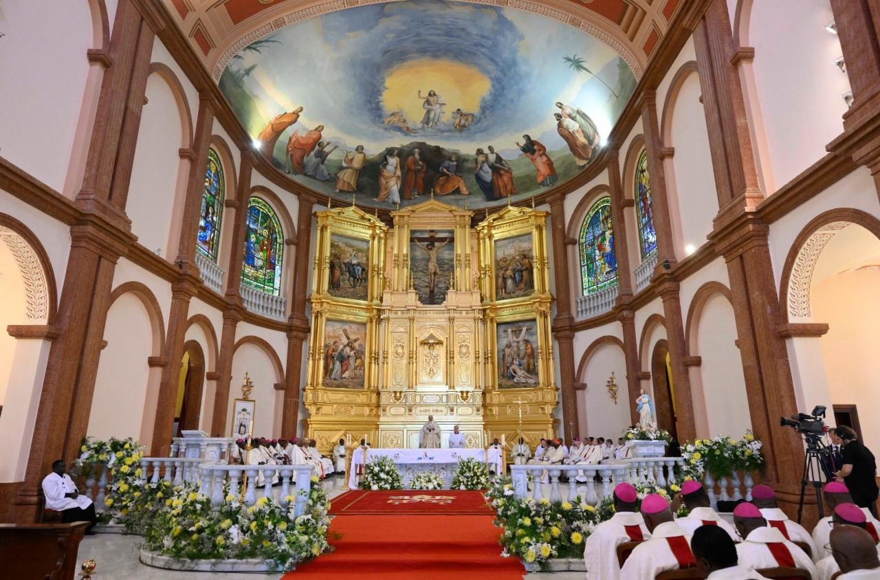 У середу, 22 квітня 2026 року, другий день перебування в Екваторіальній Ґвінеї та передостанній день ІІІ Апостольської подорожі, Папа Лев XIV прибув уранці до міста Монґомо на сході країни, поблизу з кордоном з Ґабоном. Там він відслужив Святу Месу в катедральному соборі Непорочного Зачаття. Цей храм є найбільшою культовою спорудою центральної Африки, а його архітектура наслідує площу й базиліку Святого Петра у Ватикані. Перед початком Євхаристійного богослужіння, на яке зібралися понад 100 тисяч вірних, чимало з яких прибули із сусіднього Ґабону, Святіший Отець поблагословив наріжний камінь під спорудження катедрального собору в новій столиці країни Сьюдад-де-ла-Пас. Про це розповідає українська редакція «Vatican News».