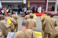 В’язниця Бати відома як місце суворого ув’язнення. Святішого Отця зустріли міністр юстиції Реджиналдо Бійоґо Мба Ндонґ Ангесомо, директор в’язниці, капелан та представники персоналу в’язниці. З привітальним словом звернувся директор в’язниці. Також із коротким словом звернувся один із в’язнів. Особливу святкову атмосферу в місці позбавлення волі не зіпсував навіть дощ.