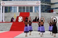 Зустріч відбулася у вівторок, 21 квітня 2026 року, після обіду, в новозбудованому академічному містечку Національного університету Екваторіальної Ґвінеї, названому на честь Лева XIV та збіглася з його інавгурацією. Дякуючи за цей «ввічливий жест», Святіший Отець зауважив, що така честь «виходить за межі особи та радше покликається на цінності, які ми хочемо разом передавати». За його словами, відкриття освітнього осередку має значення, що виходить за матеріальні межі, адже йдеться про відкриття «простору для надії, зустрічі та прогресу».