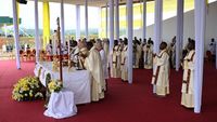 Продовжуючи Апостольську подорож африканським континентом, 16 квітня 2026 року Папа Лев XIV відслужив Святу Месу в аеропорту Баменди, міста на заході Камеруну. Проповідуючи під час Святої Меси, Папа висловив радість від того, що має змогу відвідати цей регіон та зазначив, що приходить сюди як паломник миру та єдності, і, насамперед, розділити з мешканцями регіону їхній шлях, їхні труднощі та надії. Святіший Отець відзначив, що «святкові урочистості, що супроводжують їхні літургії та радість, що випливає з молитви, яку вони підносять до Бога, є знаком їхньої довірливої відданості Йому, їхньої непохитної надії», а також те, що вони з усією силою тримаються «за любов Отця, який стає близьким і з милосердям дивиться на страждання своїх дітей».