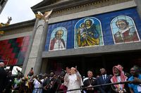 Після завершення зустрічі Святіший Отець разом з представниками місцевої громади випустили в небо голубів як знак миру. «Мої дорогі браття й сестри, сьогодні Господь обрав усіх нас, щоб ми стали тими, хто несе мир на цю землю. Молімося разом до Господа. Нехай мир справді панує серед нас. Нехай, випускаючи цих білих голубів — символ миру, — Божий мир зійде на всіх нас, на цю землю, і нехай Він береже нас усіх у єдності свого миру», — сказав він, промовляючи з порога храму.