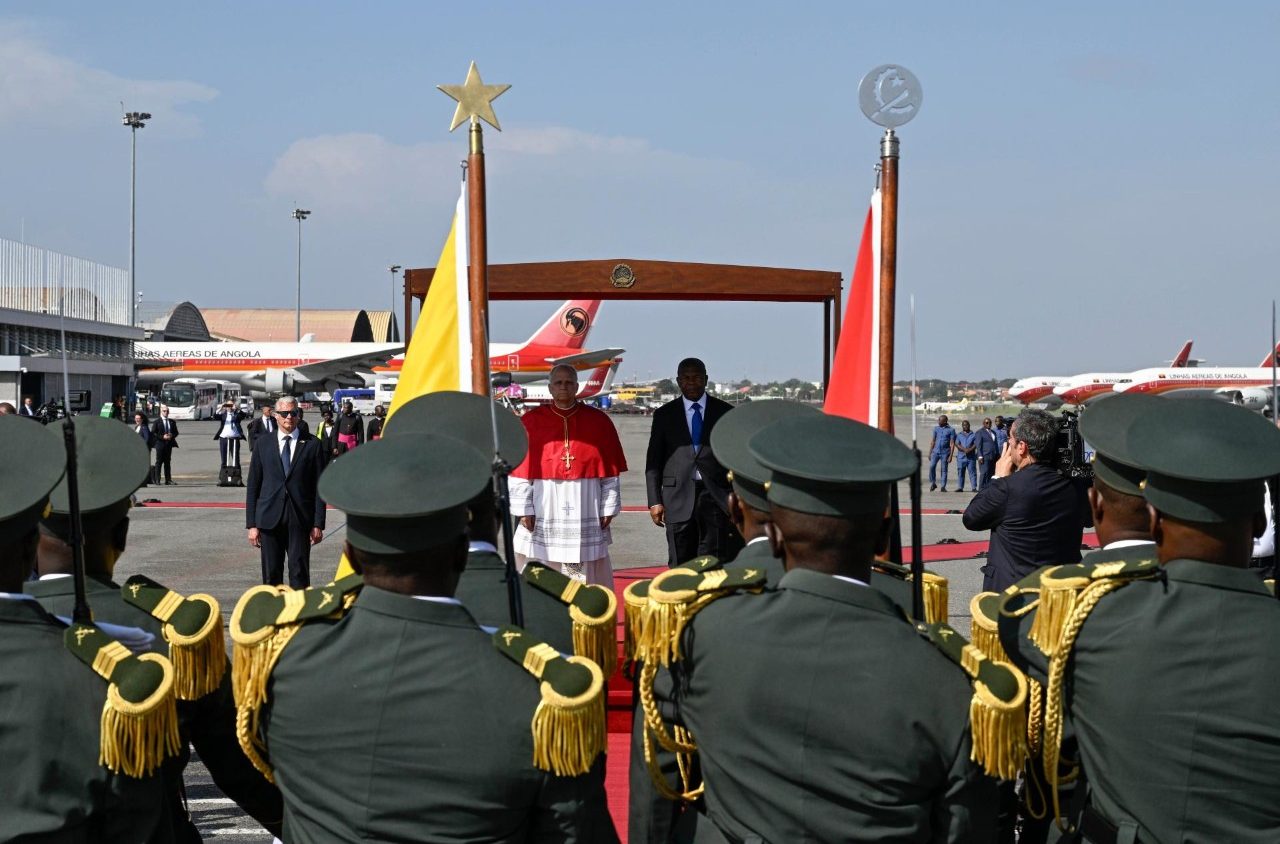 Літак італійської авіакомпанії «ITA Aireays», який двома годинами раніше піднявся у небо зі столиці Камеруну, приземлився в міжнародному аеропорту Луанди, столиці Анголи, о 14:45 місцевого, (16:45 — київського), здолавши понад 1600 кілометрів повітряного шляху та перетнувши повітряний простір Екваторіальної Ґвінеї, Ґабону та ДР Конго. Біля підніжжя трапу Папу зустрів Президент Анголи Жоао Мануел Ґонсалвеш Лоренсо, а діти вбранні вручили йому квіти.