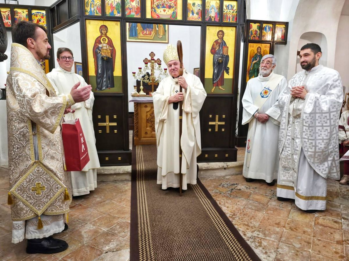 Після проповіді кардинал привітав владику Ігоря Ранцю з нещодавніми єпископськими свяченнями. Як Президент Конференції єпископів Франції, він запевнив у своїй підтримці та солідарності, наголосивши на близькості Церкви Франції до України в умовах війни та страждань українського народу.
