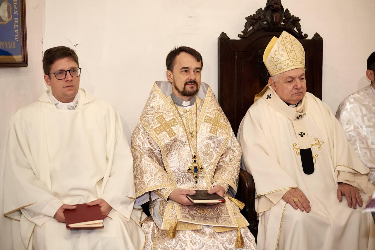 Після проповіді кардинал привітав владику Ігоря Ранцю з нещодавніми єпископськими свяченнями. Як Президент Конференції єпископів Франції, він запевнив у своїй підтримці та солідарності, наголосивши на близькості Церкви Франції до України в умовах війни та страждань українського народу.